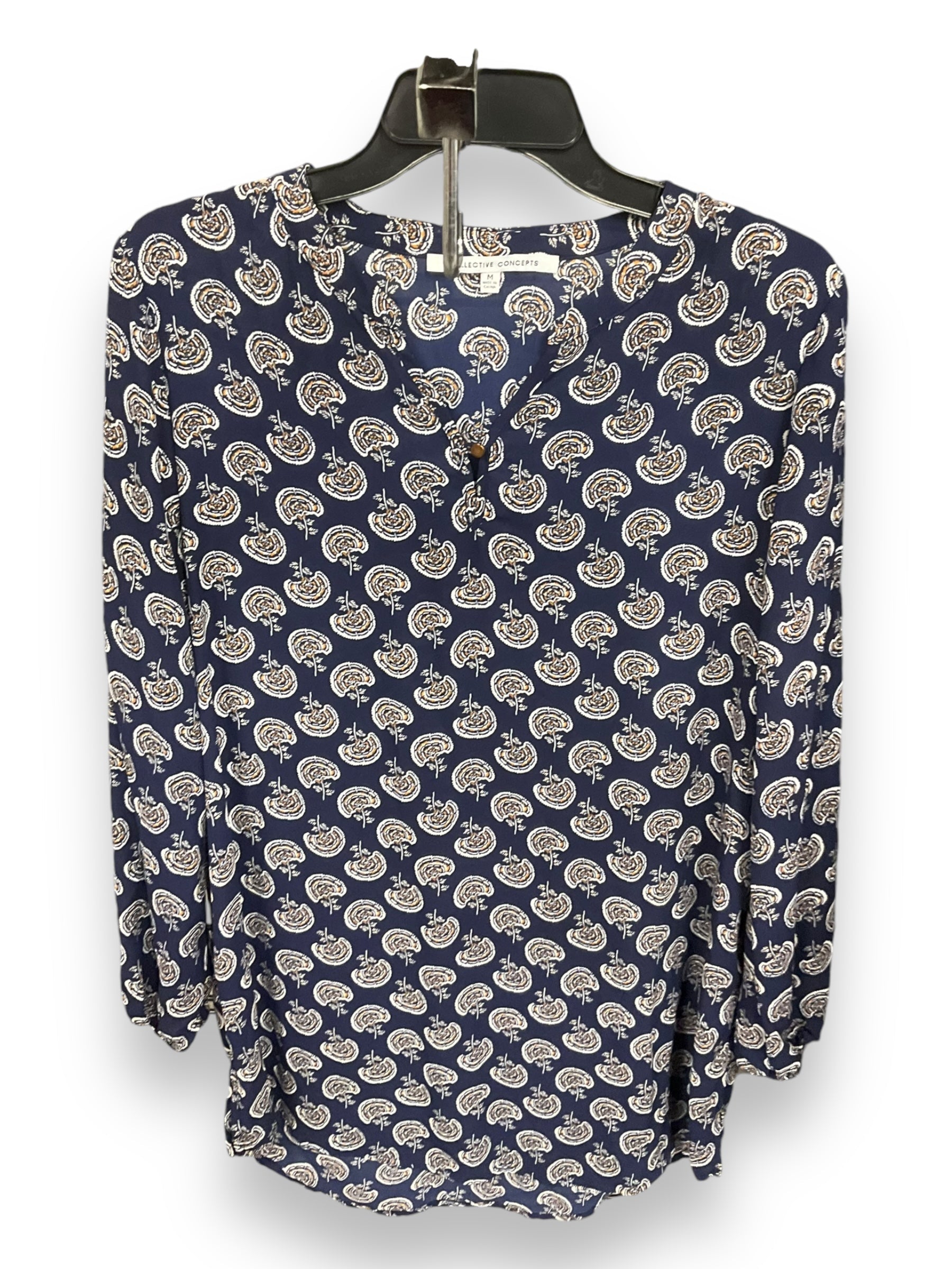 Blouse Long Sleeve By Collective Concepts In Navy, Size: M