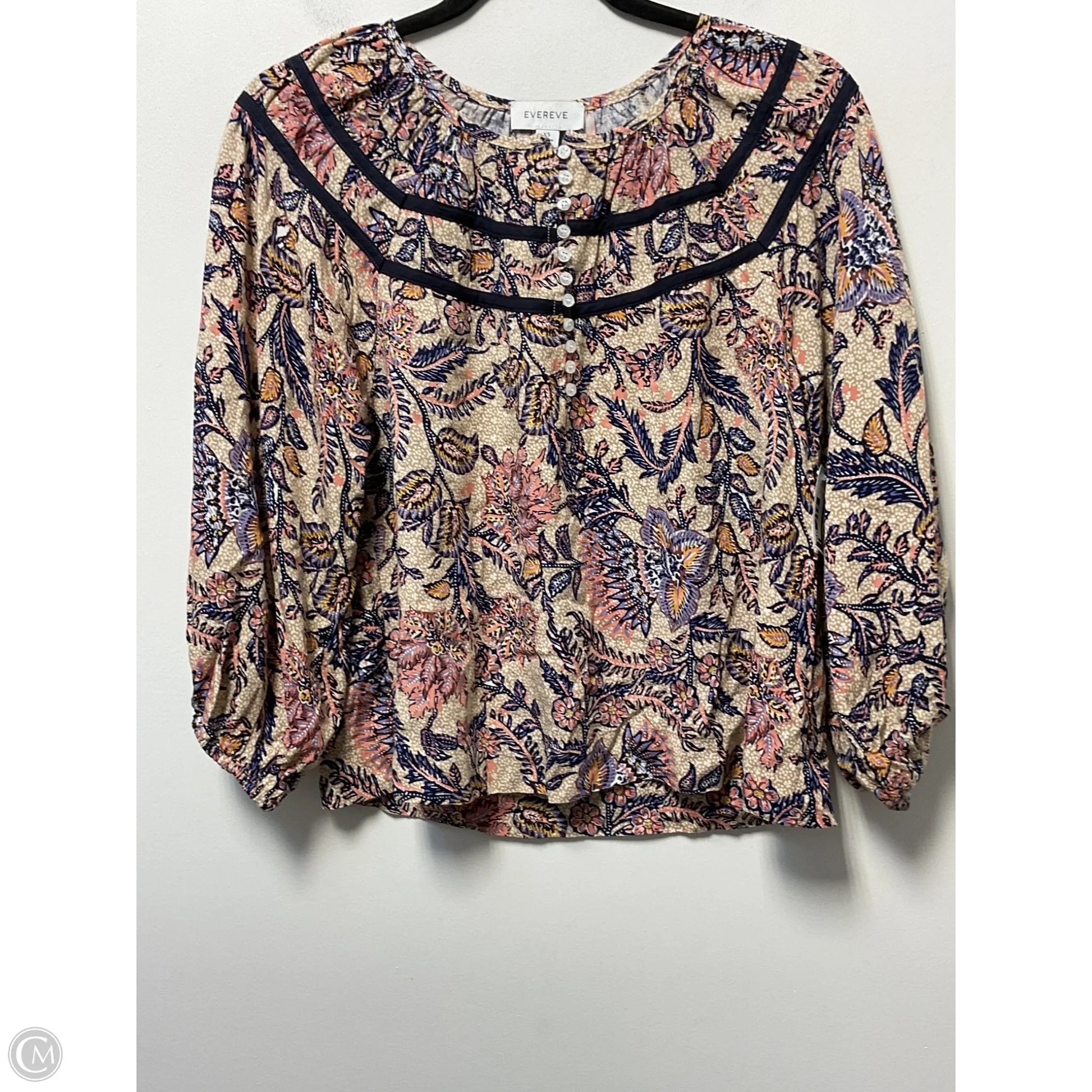 Blouse Long Sleeve By Evereve In Blue & Tan, Size: Xs