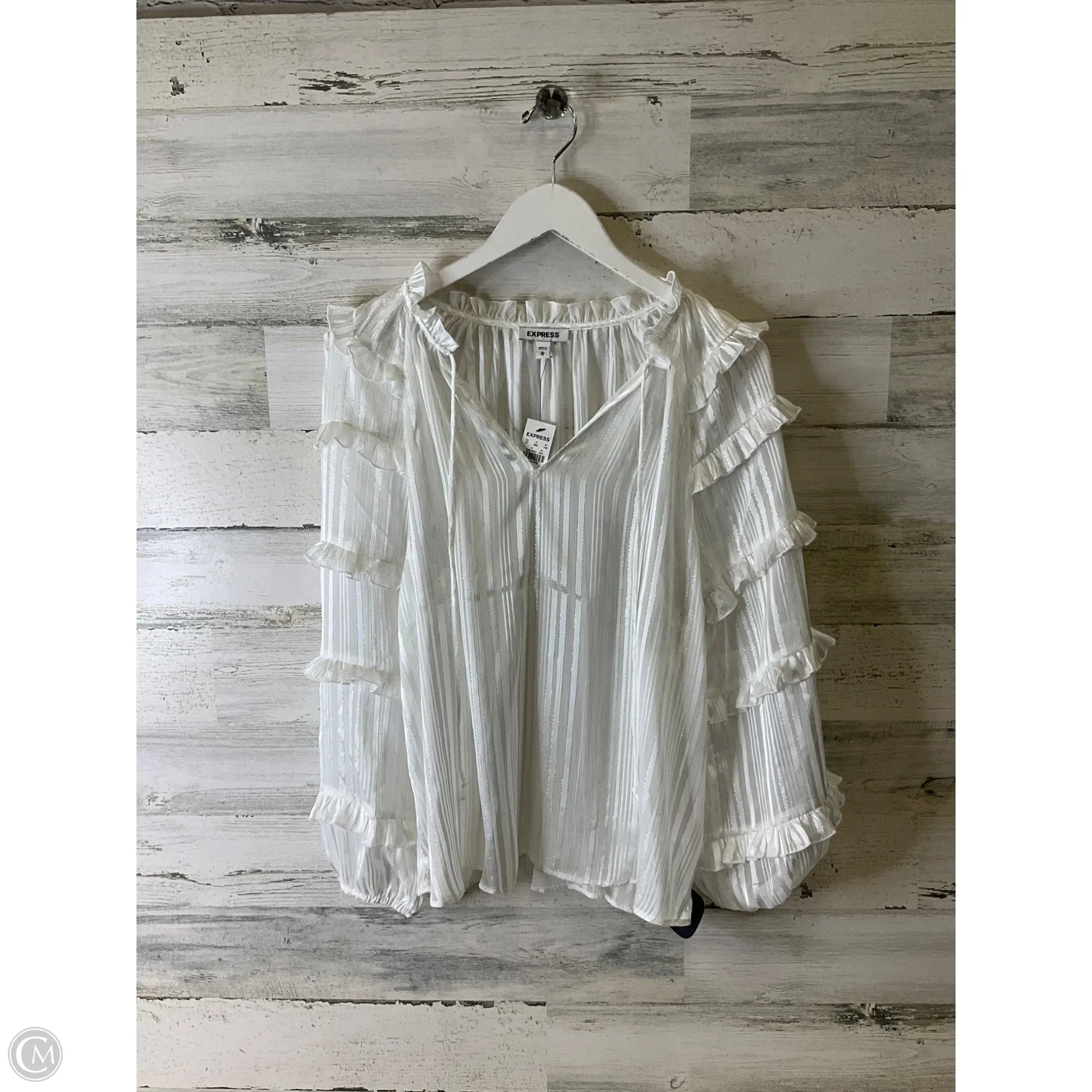 Blouse Long Sleeve By Express In White, Size: M