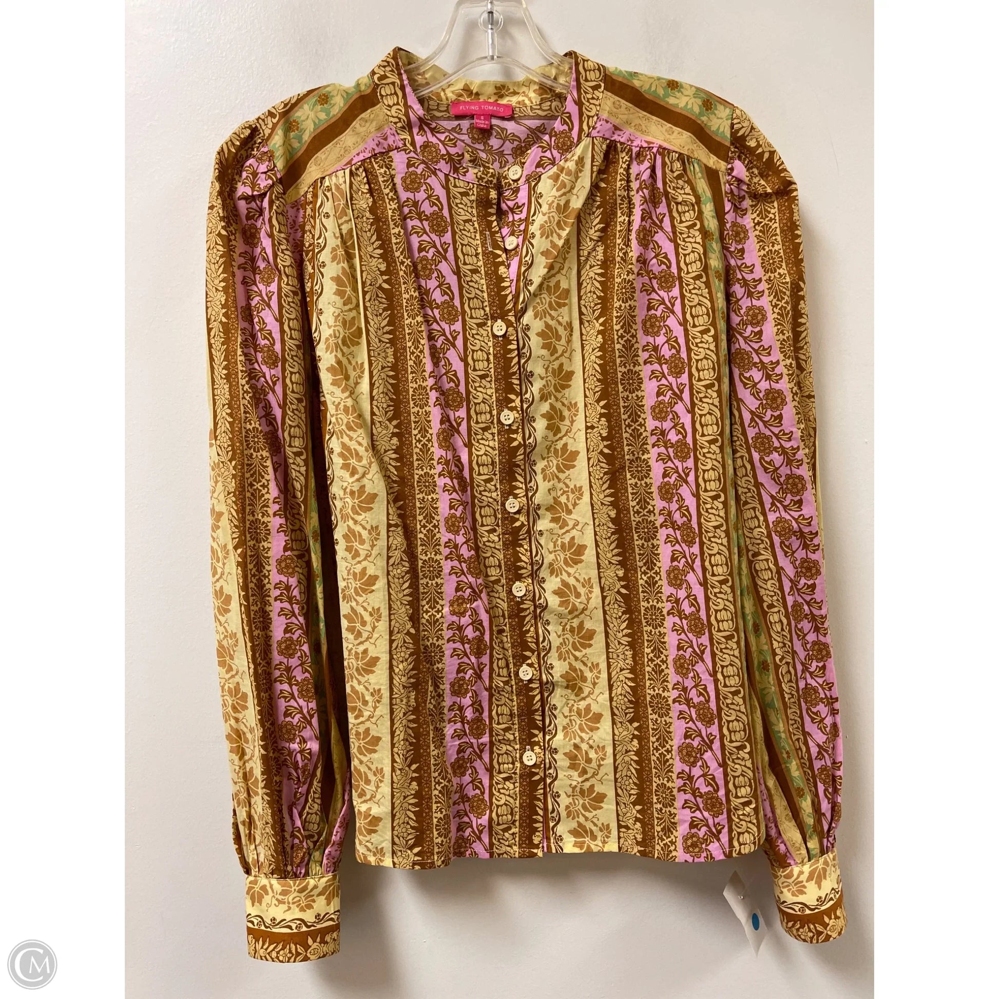 Blouse Long Sleeve By Flying Tomato In Pink & Yellow, Size: S