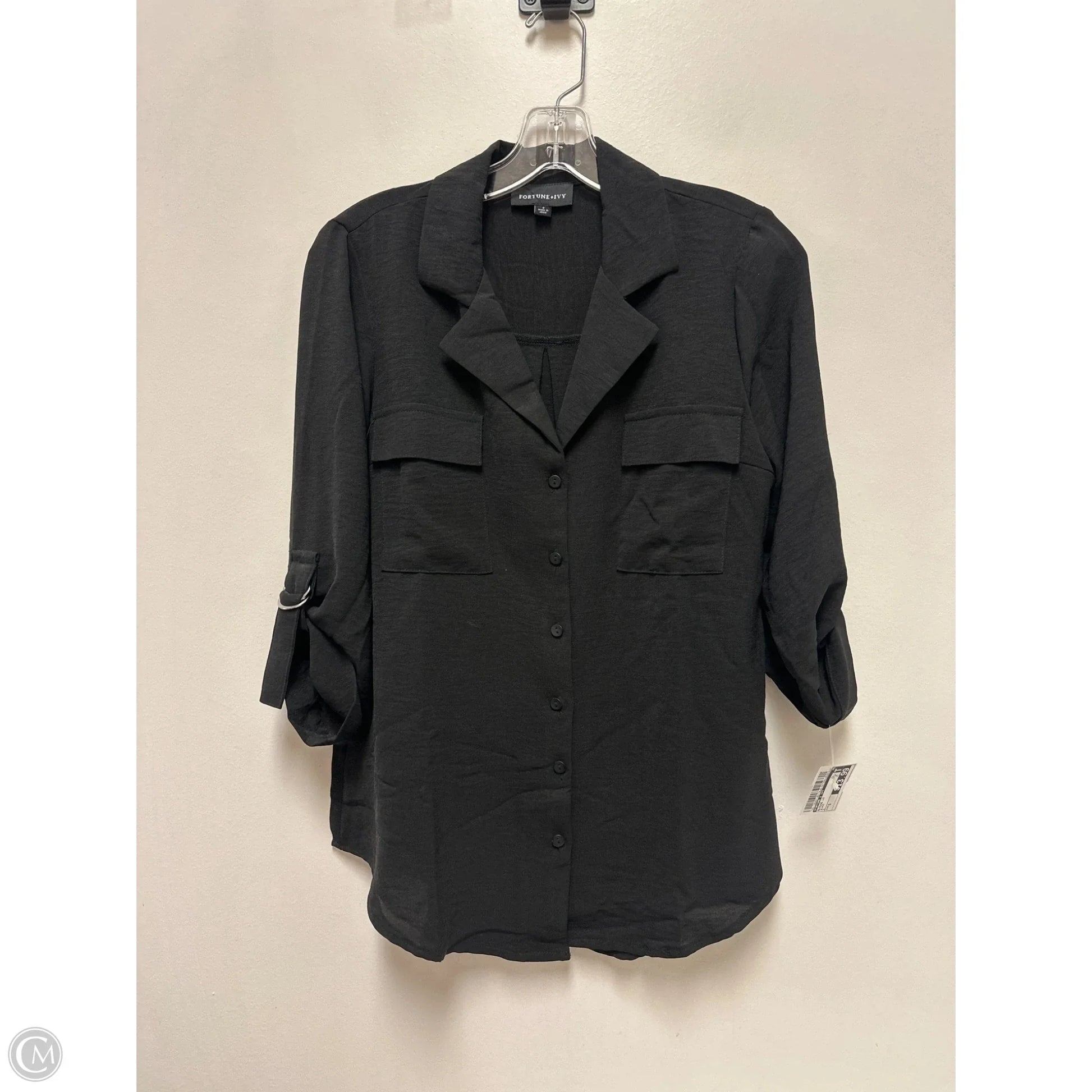 Blouse Long Sleeve By Fortune & Ivy In Black, Size: S