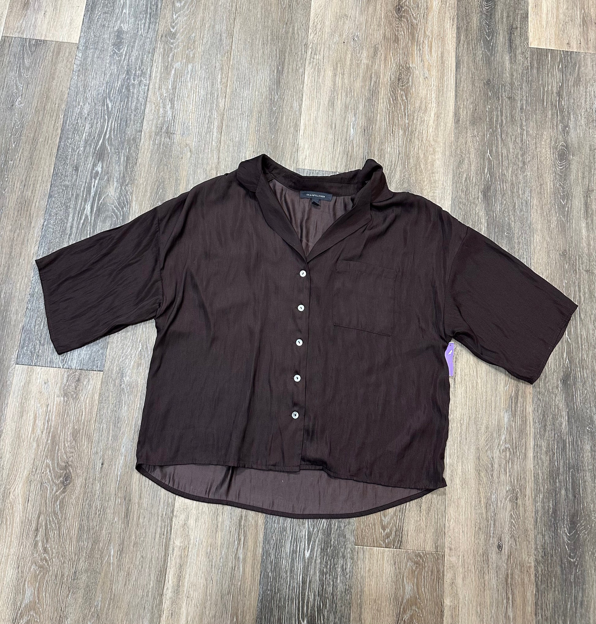 Blouse Long Sleeve By Grade & Gather In Brown, Size: M