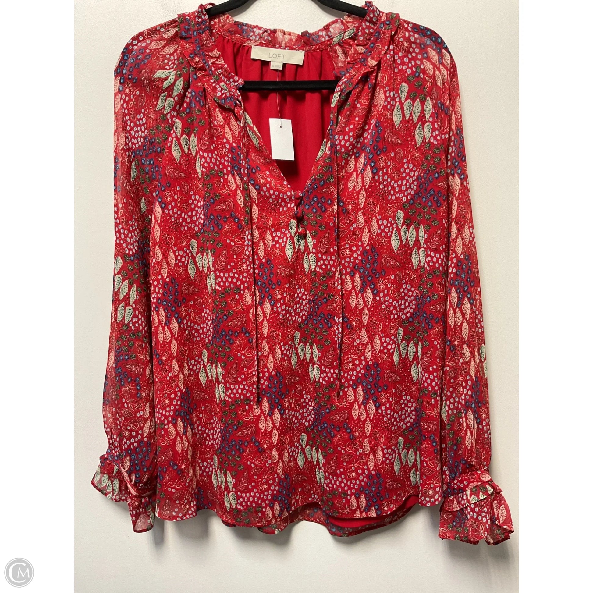 Blouse Long Sleeve By Loft In Red, Size: Xl