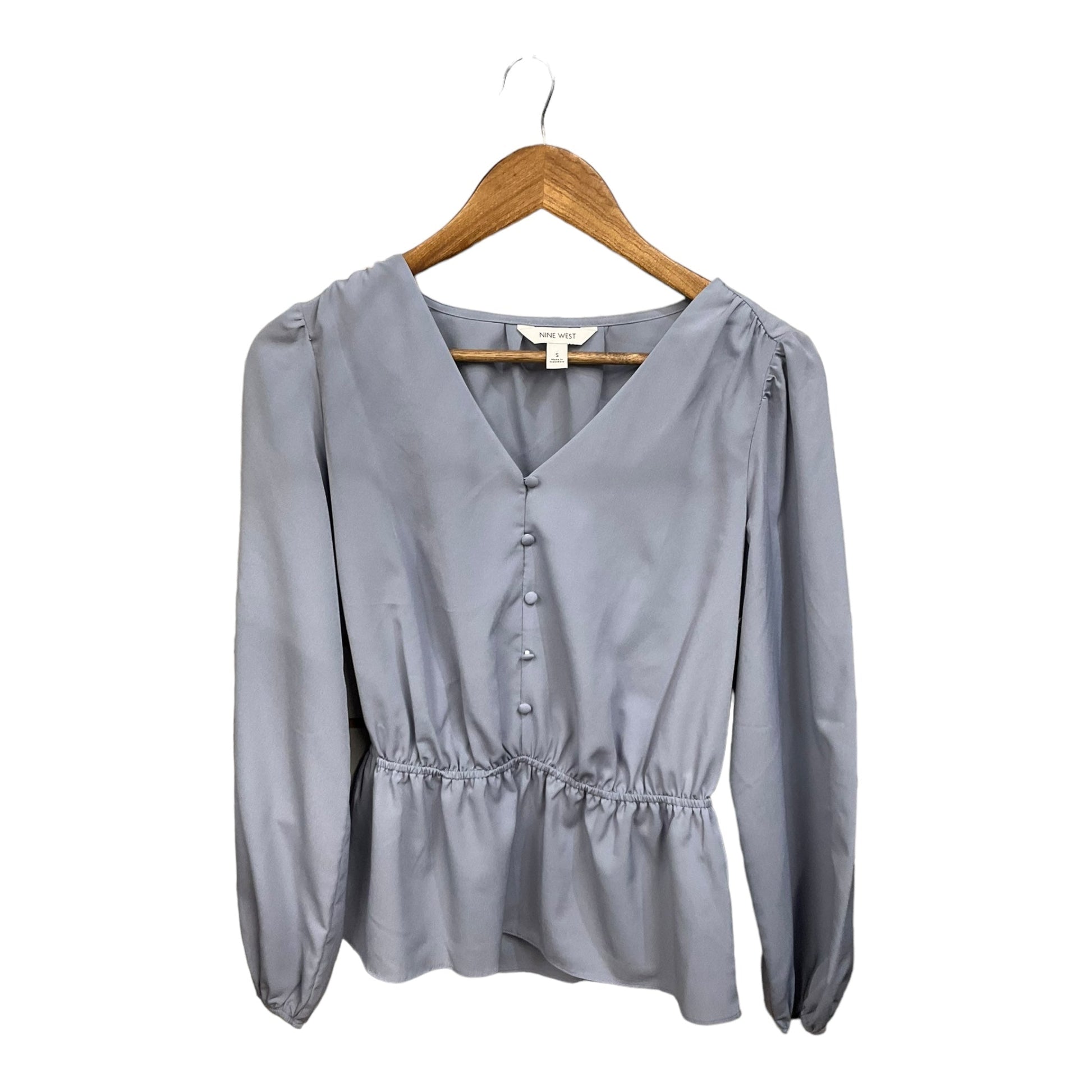 Blouse Long Sleeve By Nine West In Blue, Size: S