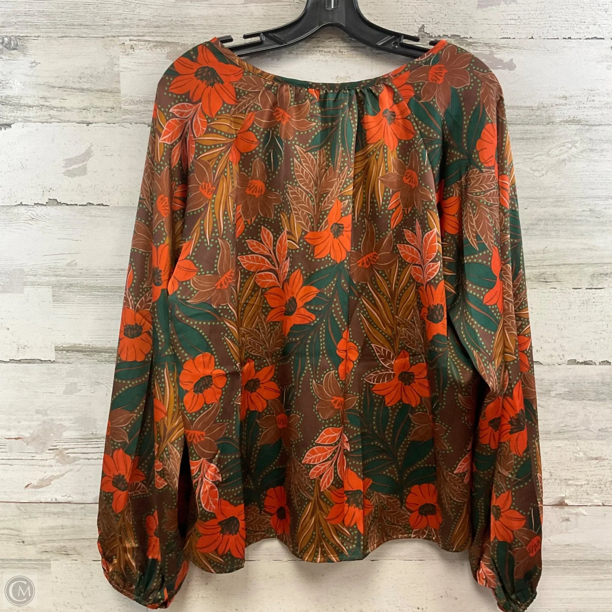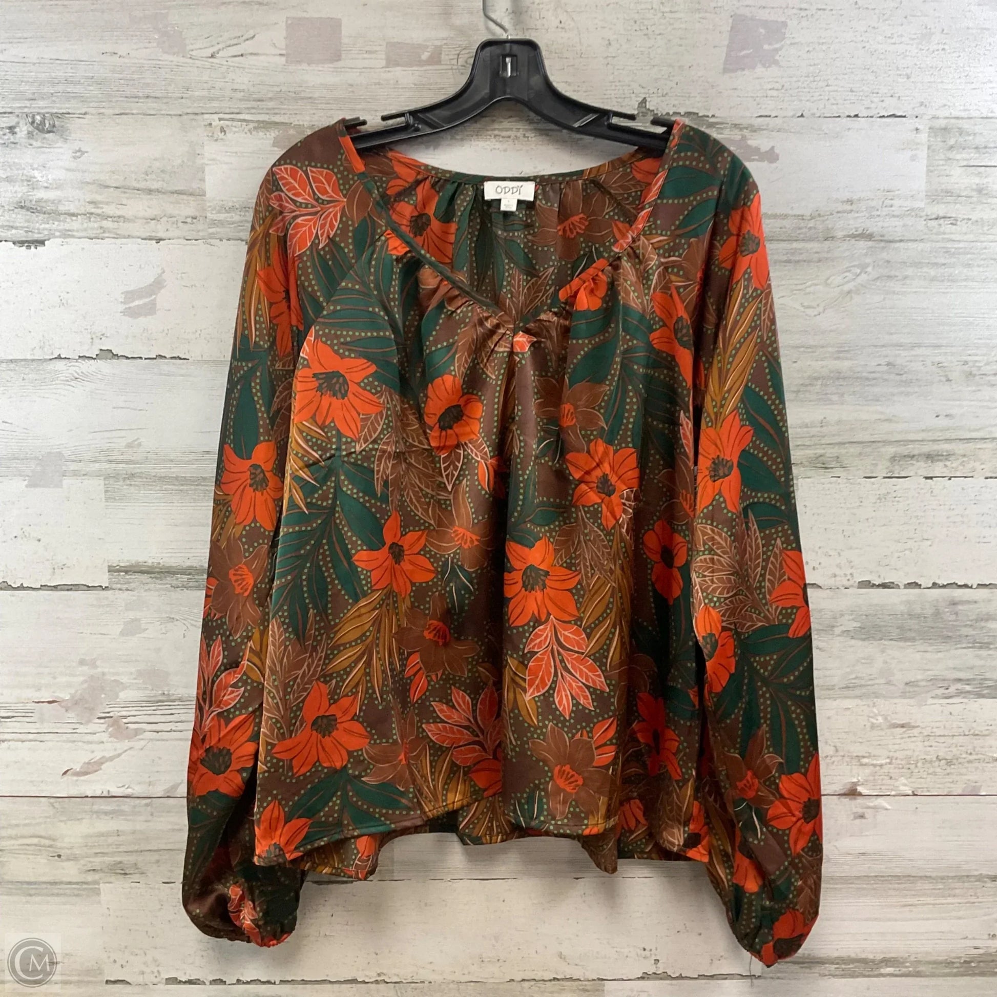 Blouse Long Sleeve By Oddi In Brown & Orange, Size: L
