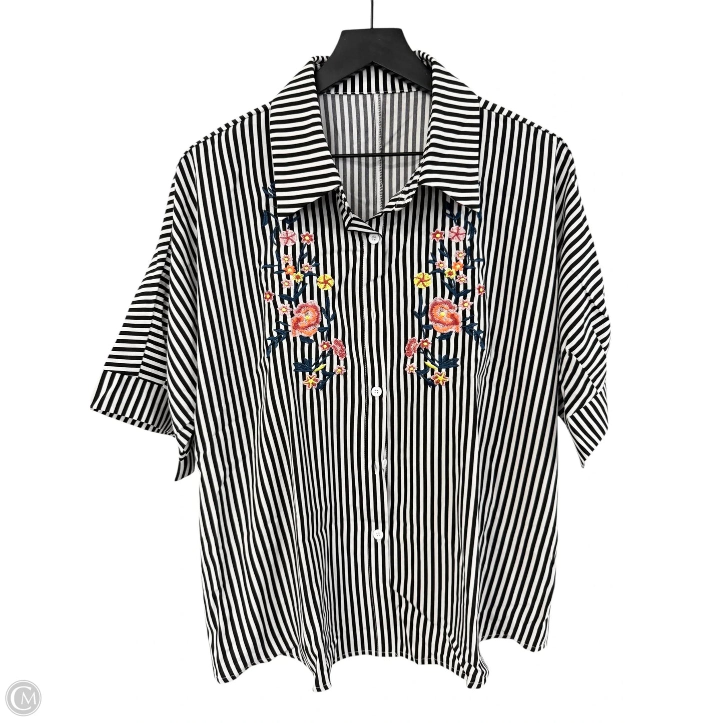 Blouse Long Sleeve By Shein In Black & White, Size: Xl