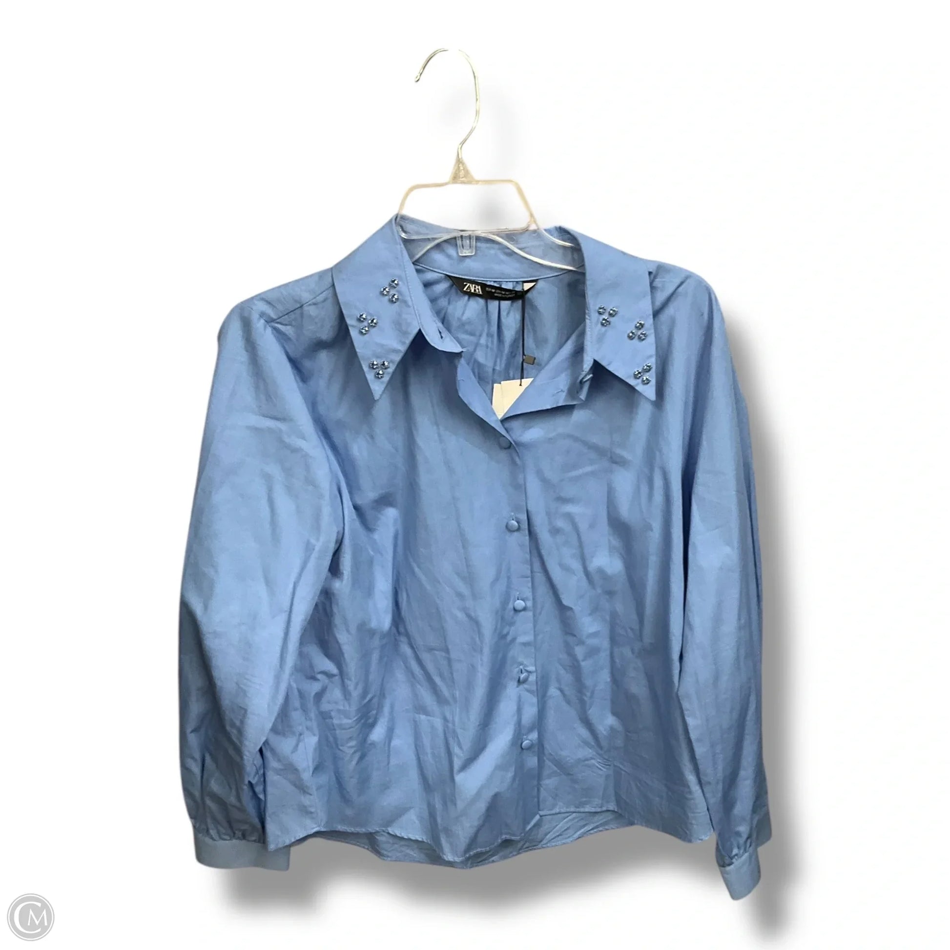Blouse Long Sleeve By Zara In Blue, Size: M