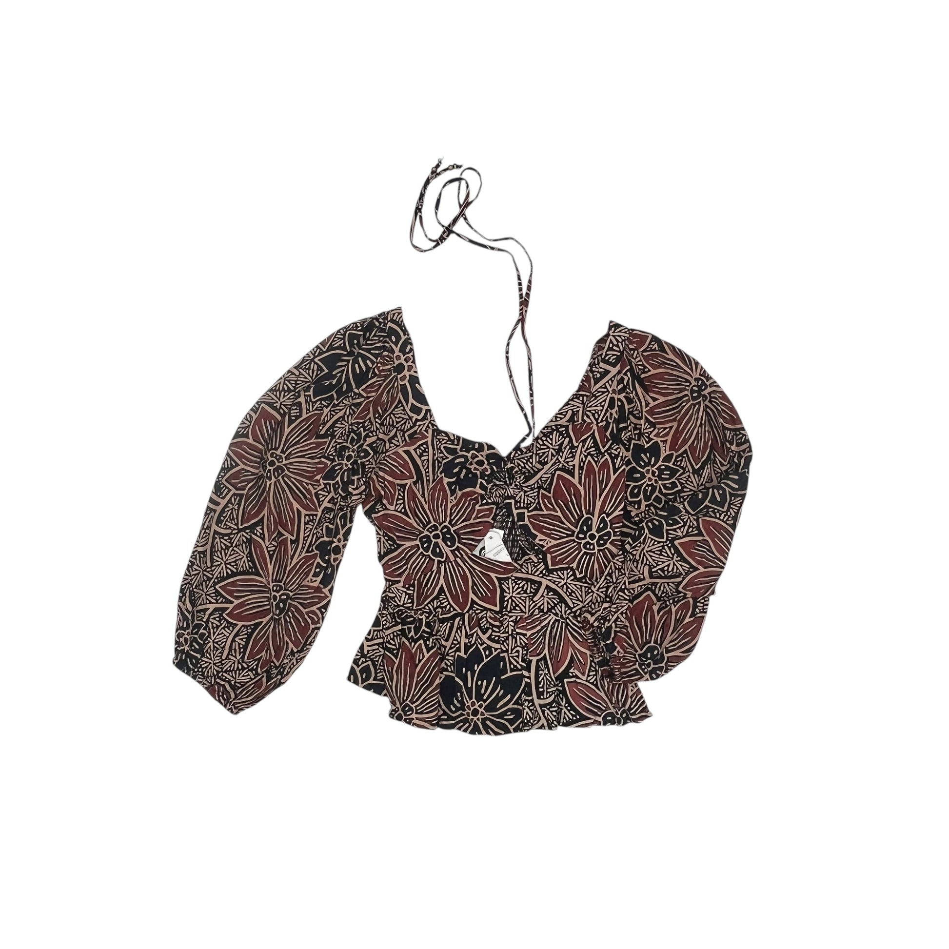 Blouse Ls By Angie In Blue & Brown, Size:L