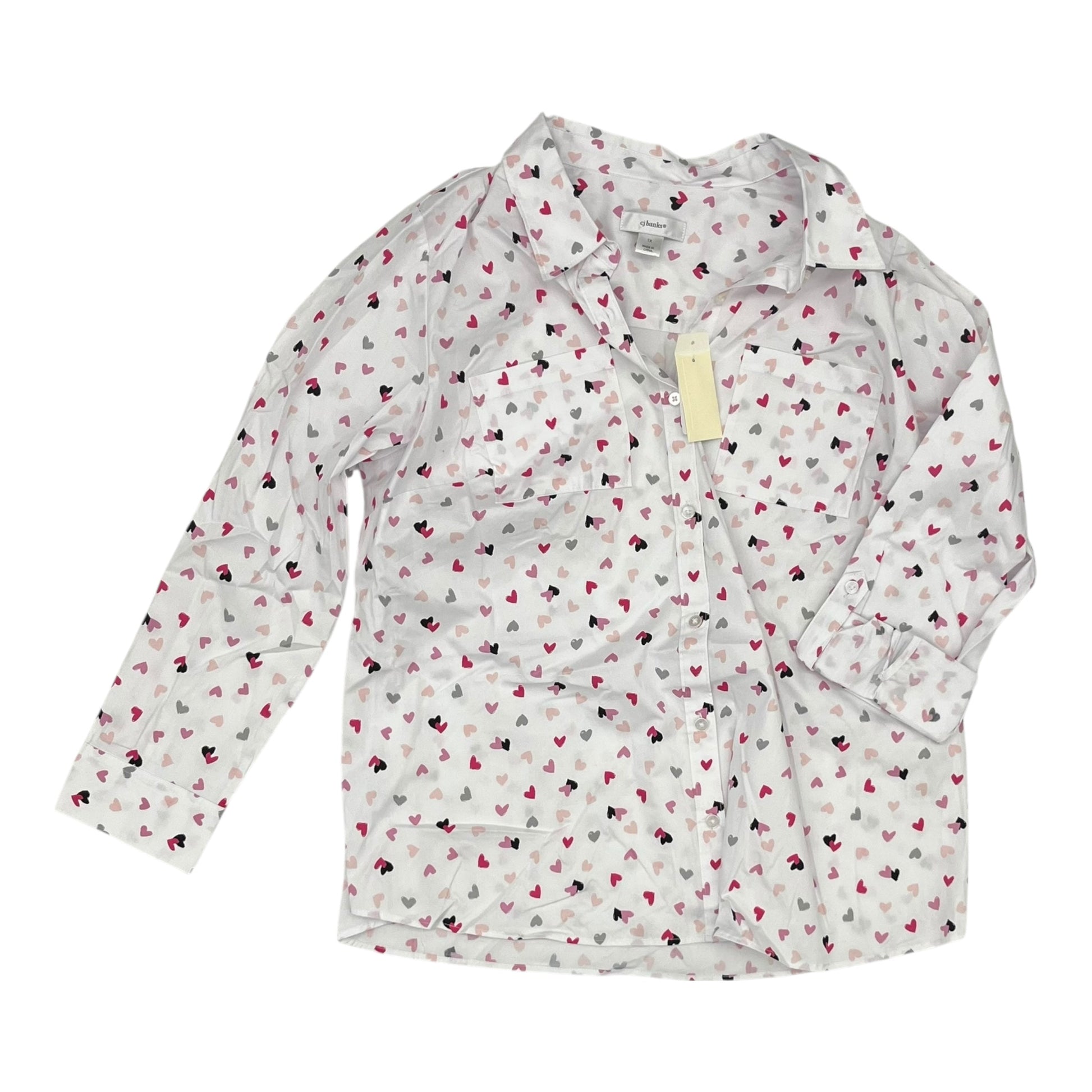 Blouse Ls By Cj Banks In White, Size:1X