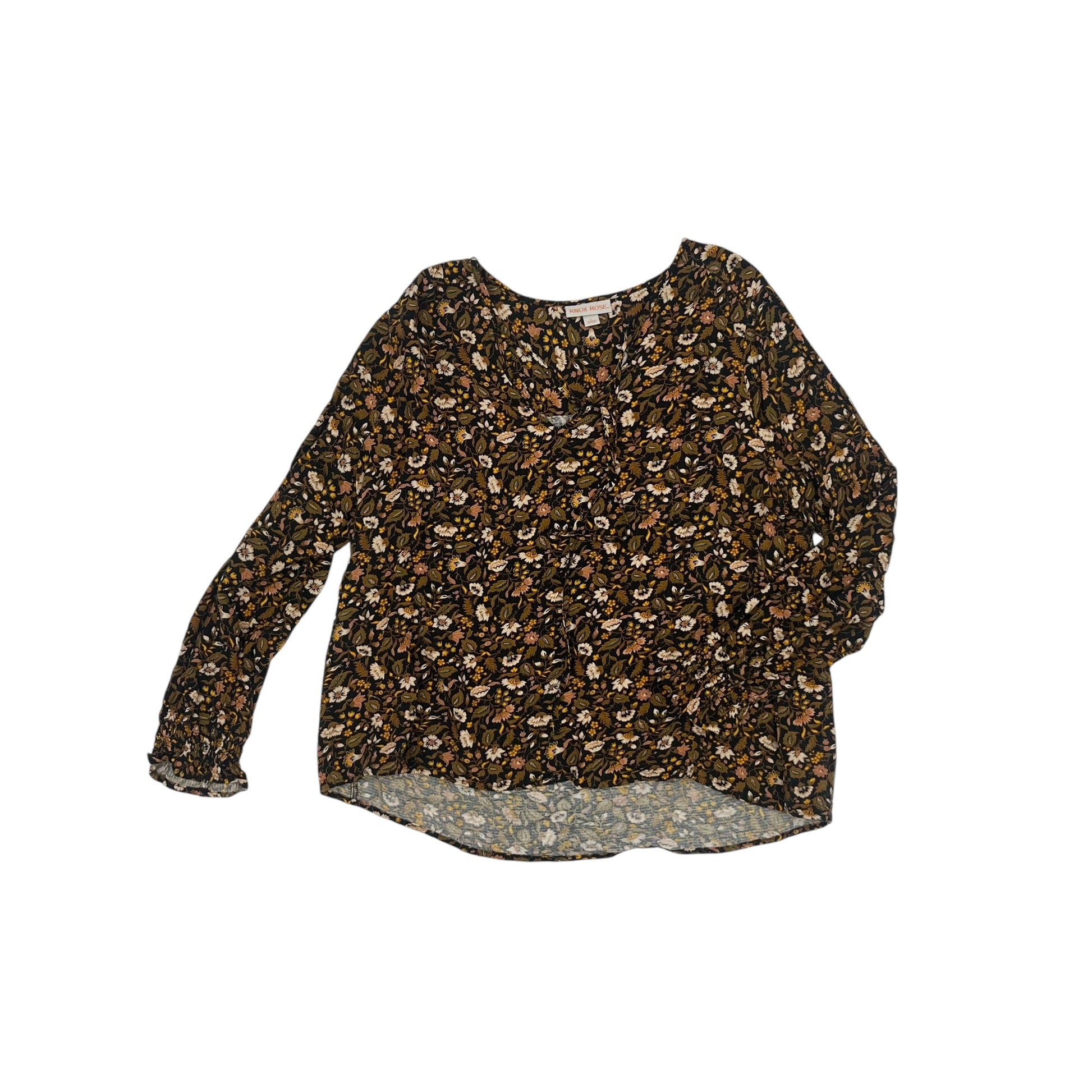Blouse Ls By Knox Rose In Black & Brown, Size:L