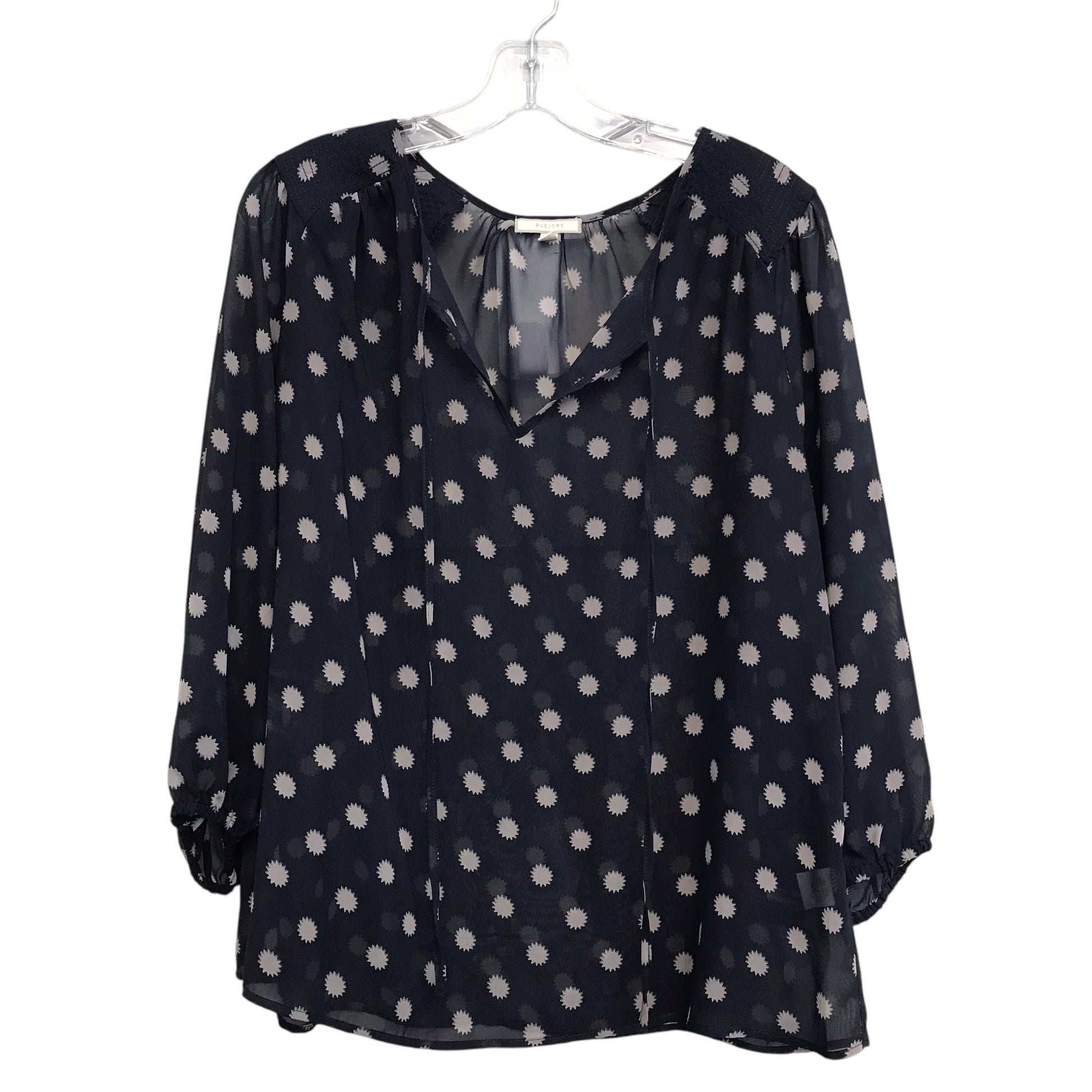 Blouse Ls By Pleione In Navy, Size:L