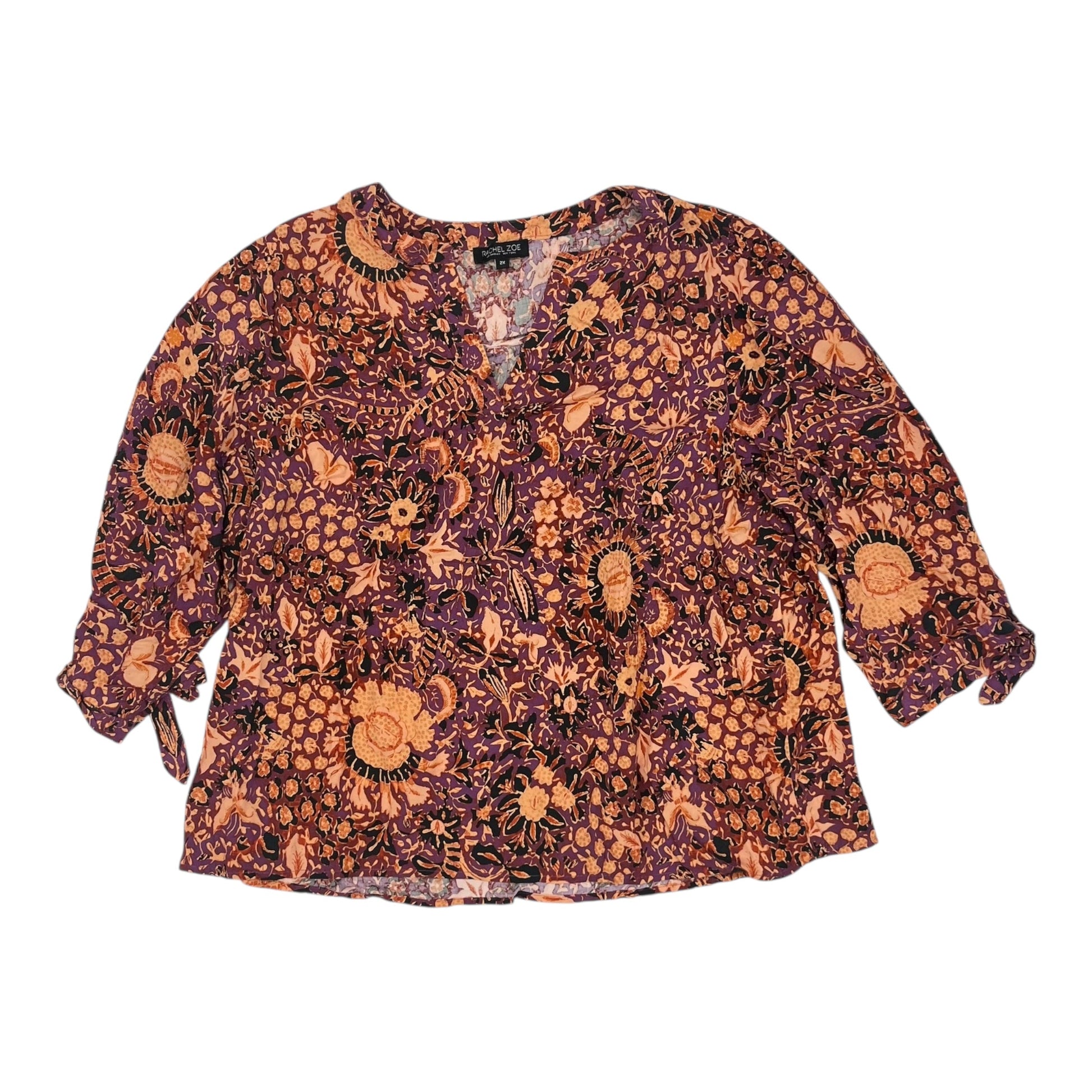 Blouse Ls By Rachel Zoe In Orange & Purple, Size:2X