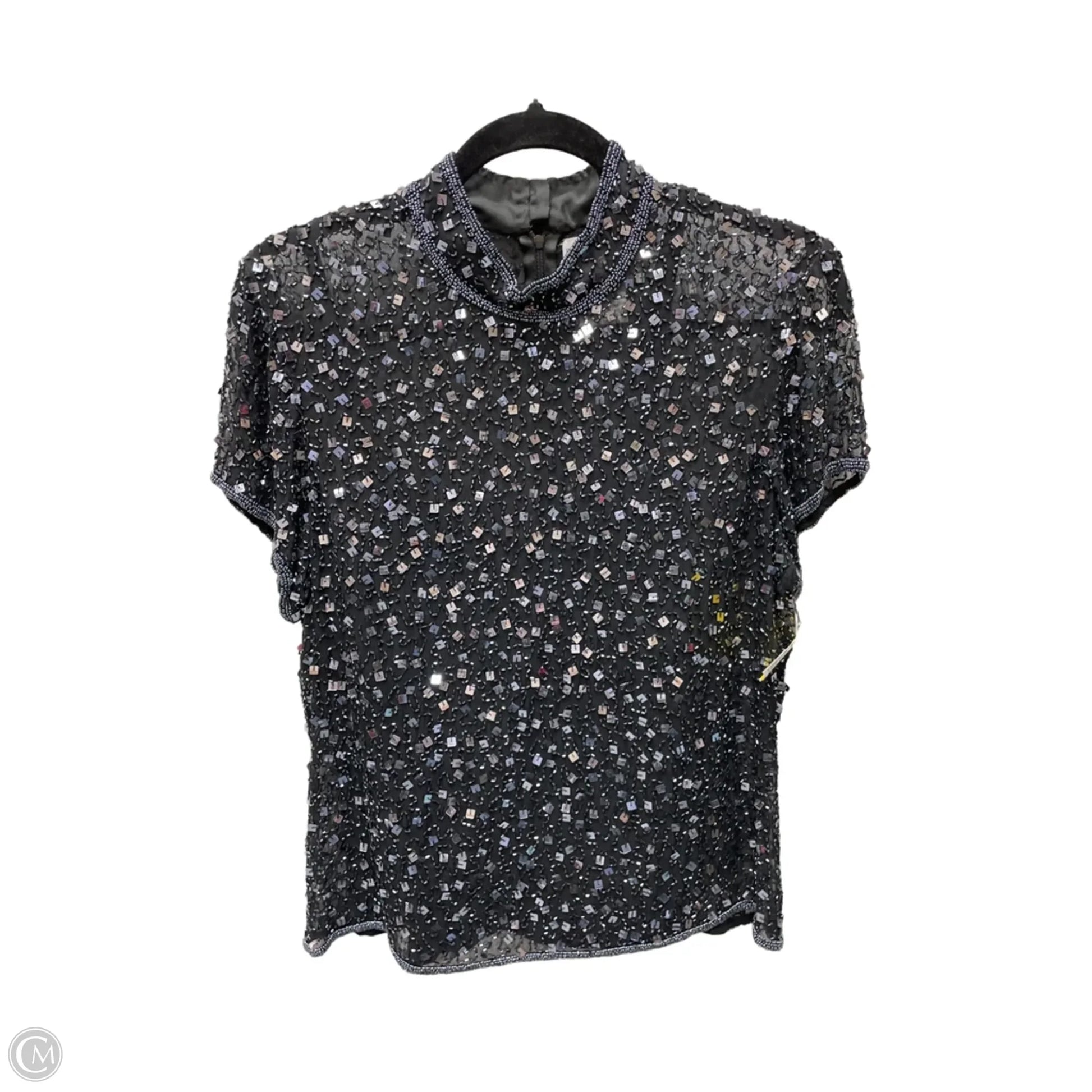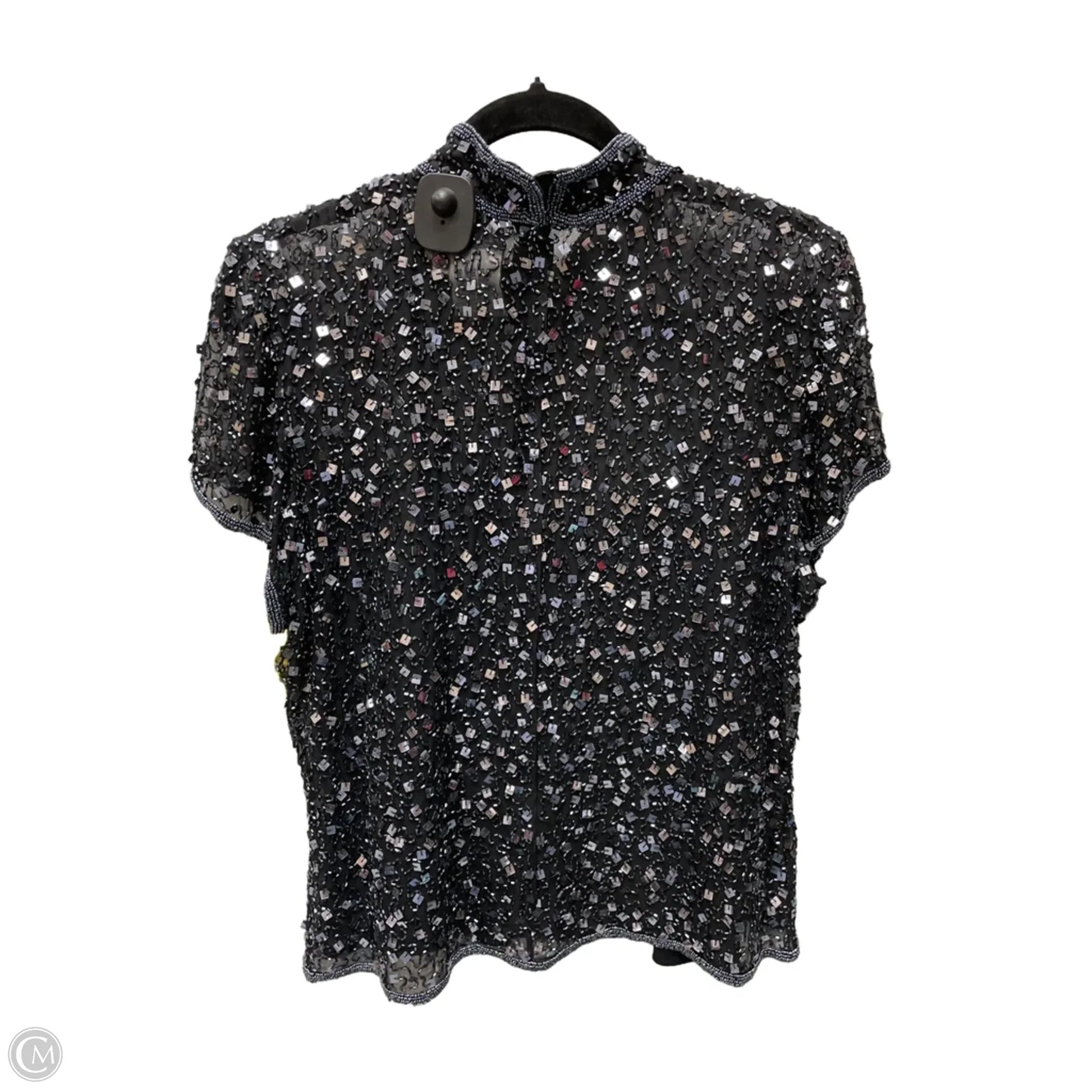 Blouse Short Sleeve By Adrianna Papell In Black & Blue, Size: Xl