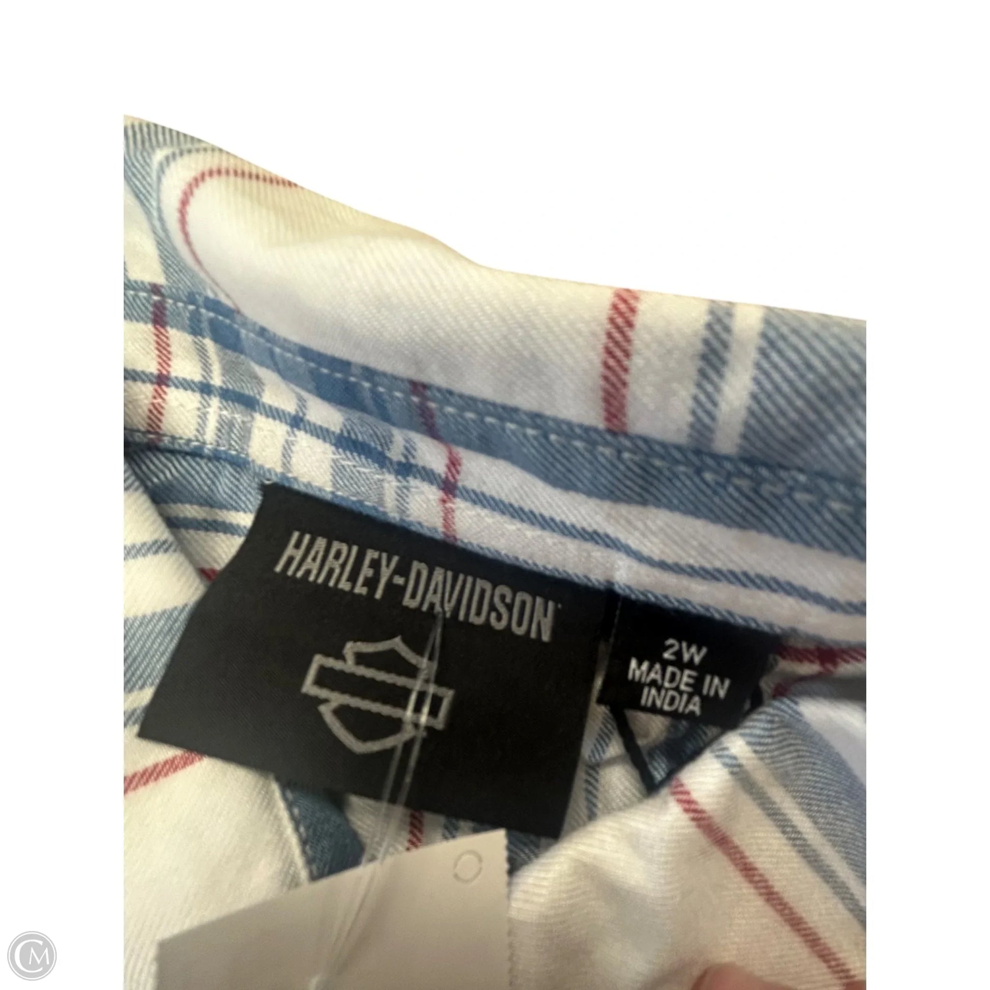 Blouse Short Sleeve By Harley Davidson In Blue & Red & White, Size: 2x