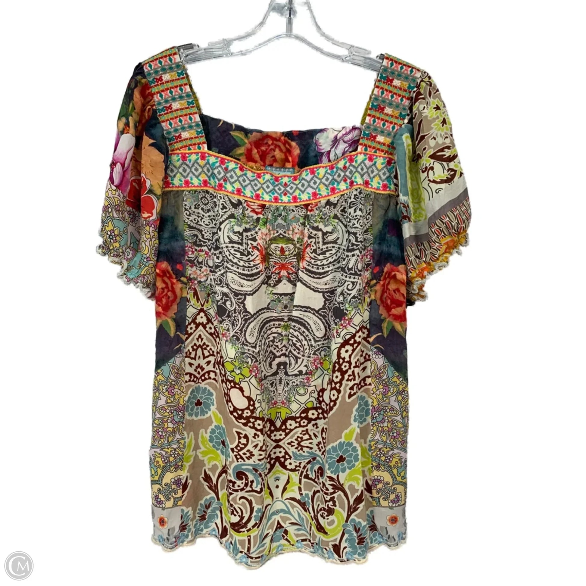 Blouse Short Sleeve By Johnny Was In Multi-colored, Size: Xl