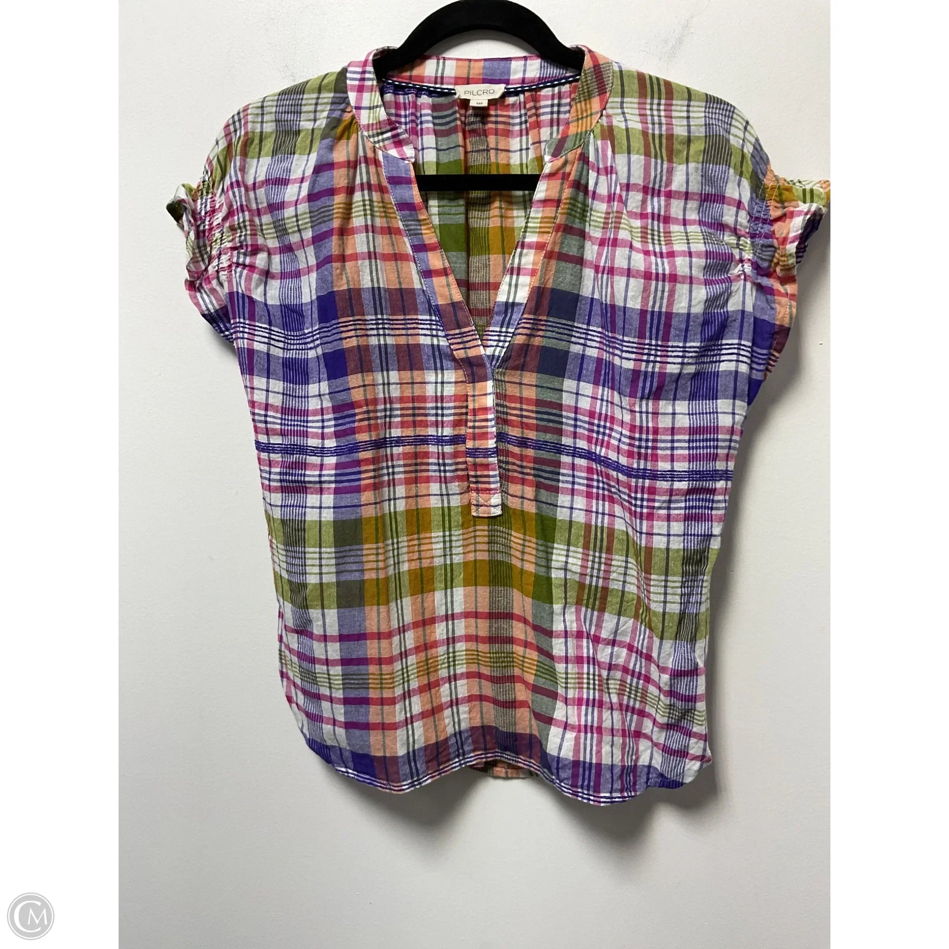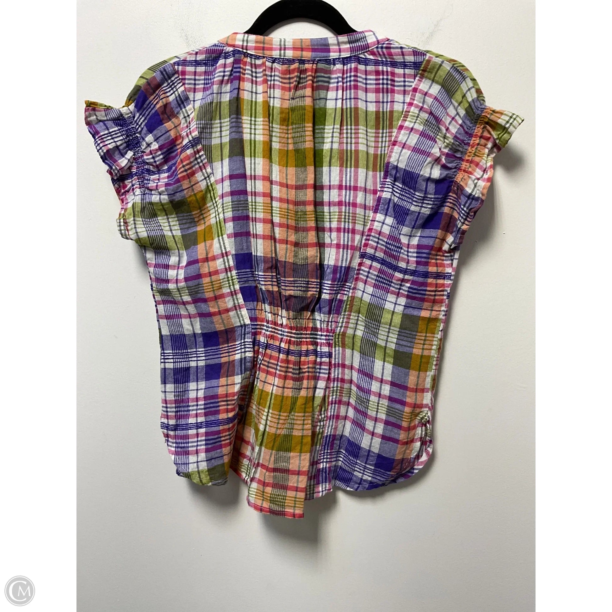 Blouse Short Sleeve By Pilcro In Plaid Pattern, Size: Xxs