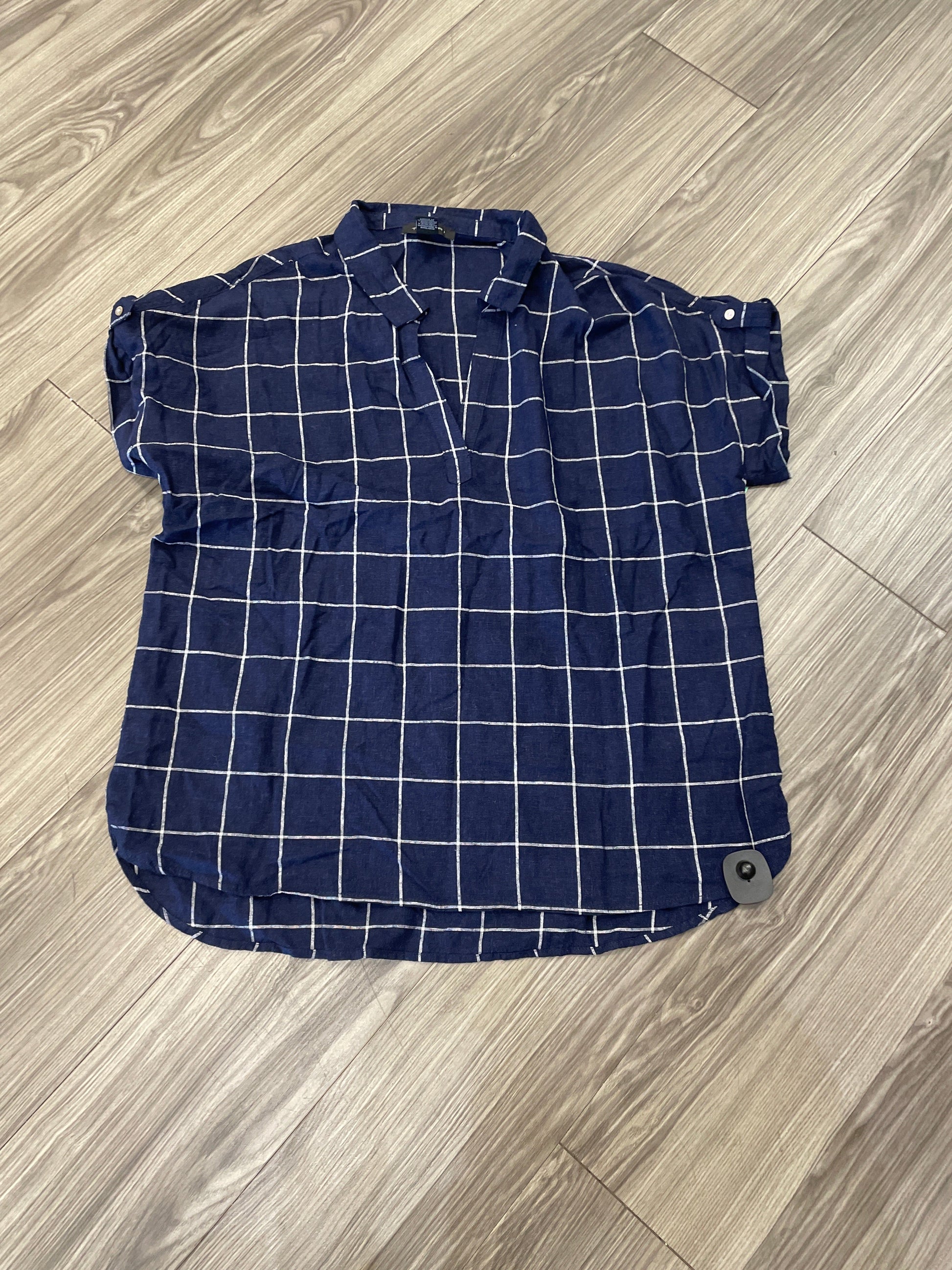 Blouse Short Sleeve By Tahari By Arthur Levine In Blue & White, Size: Xl