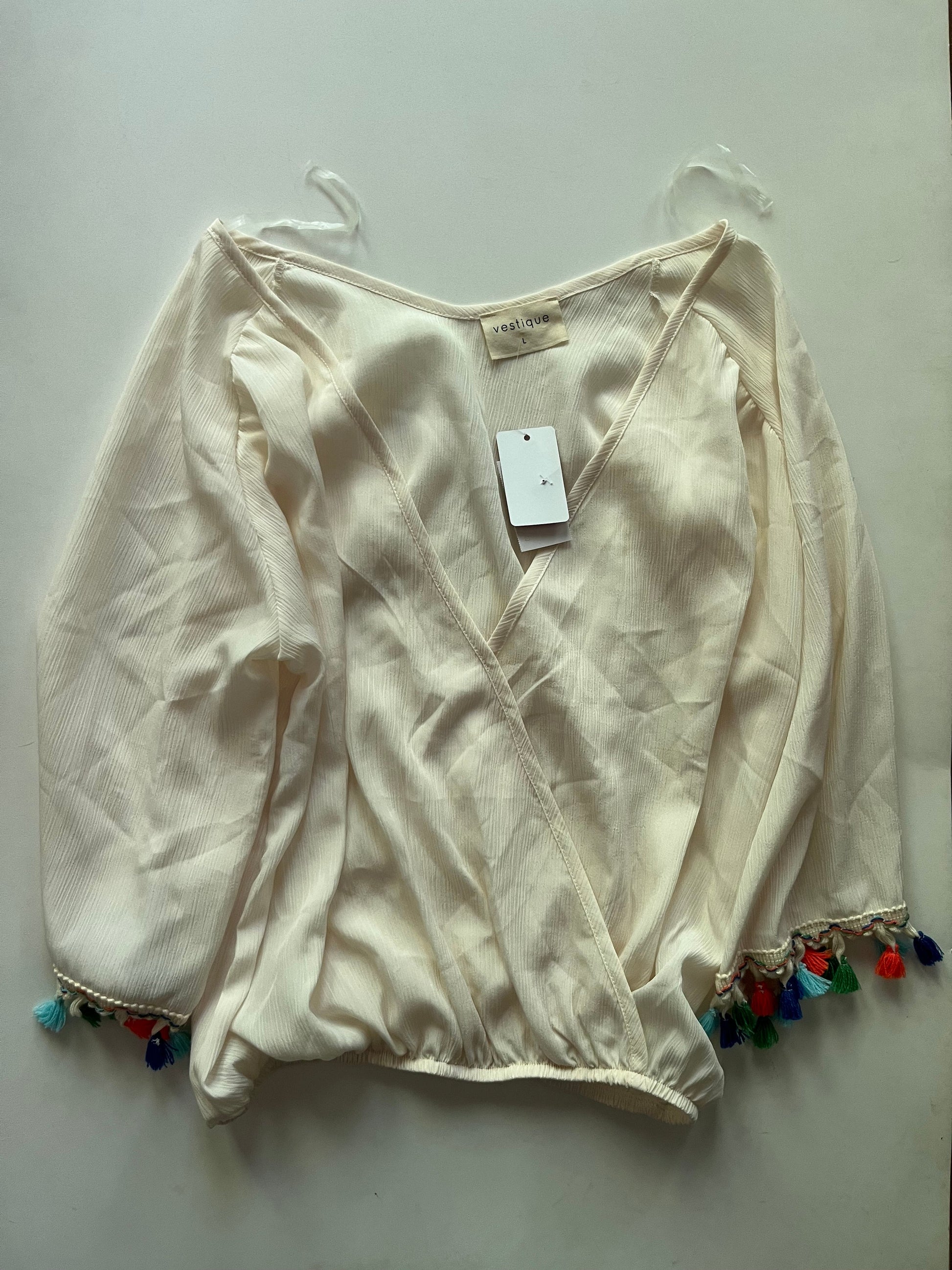 Blouse Short Sleeve By Vestique In Cream, Size: L