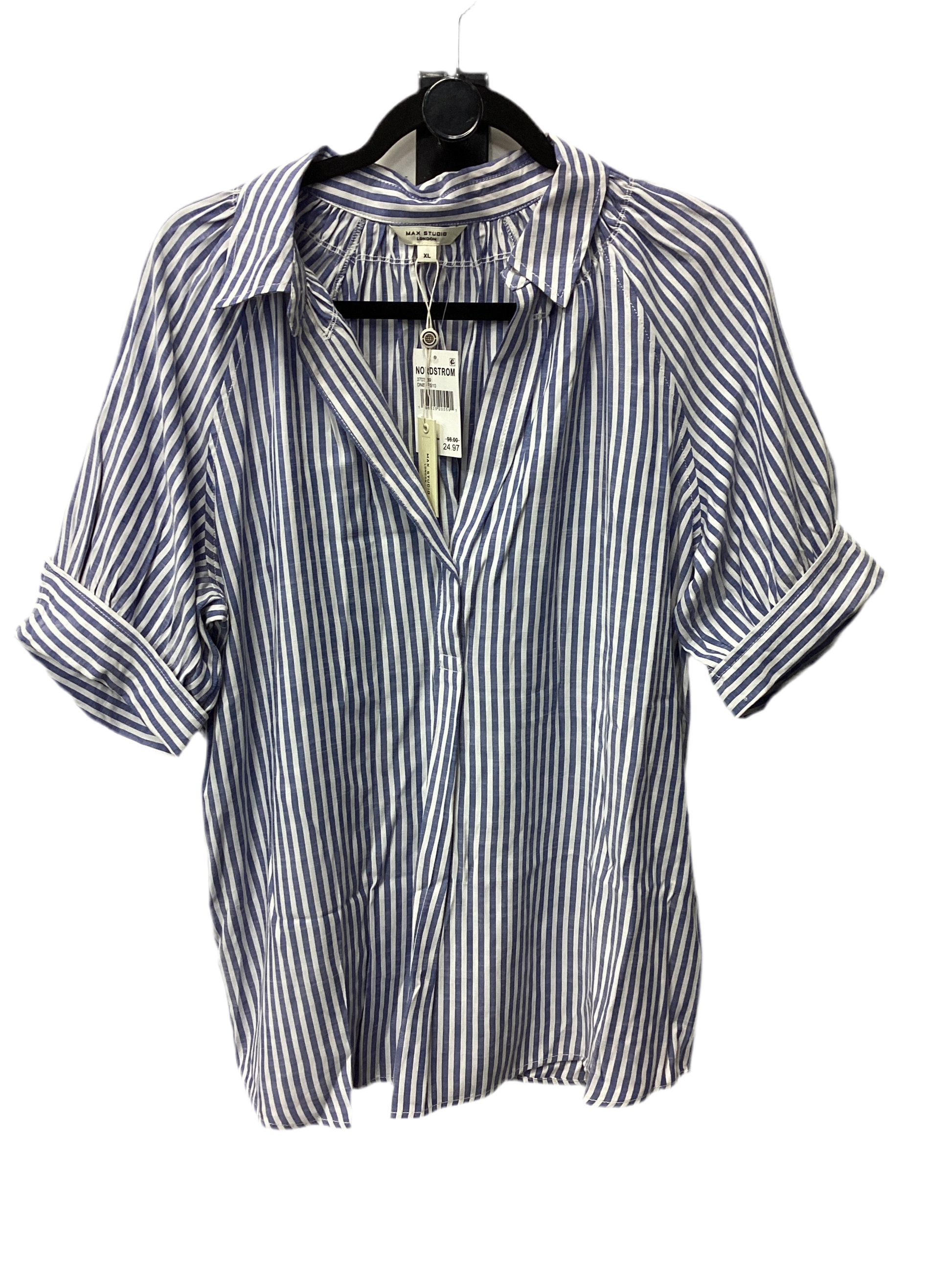 Blouse Ss By Max Studio In Blue & White, Size:Xl