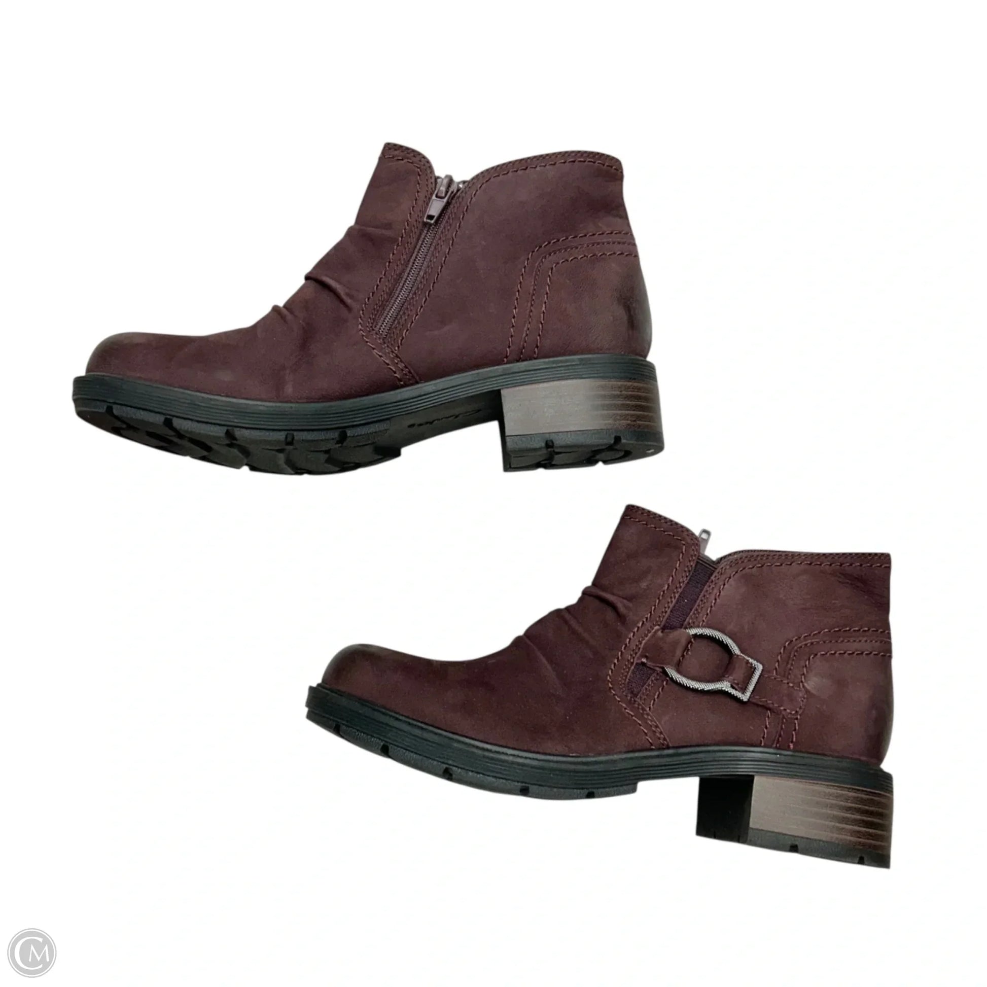 Boots Ankle Flats By Clarks In Maroon, Size: 7