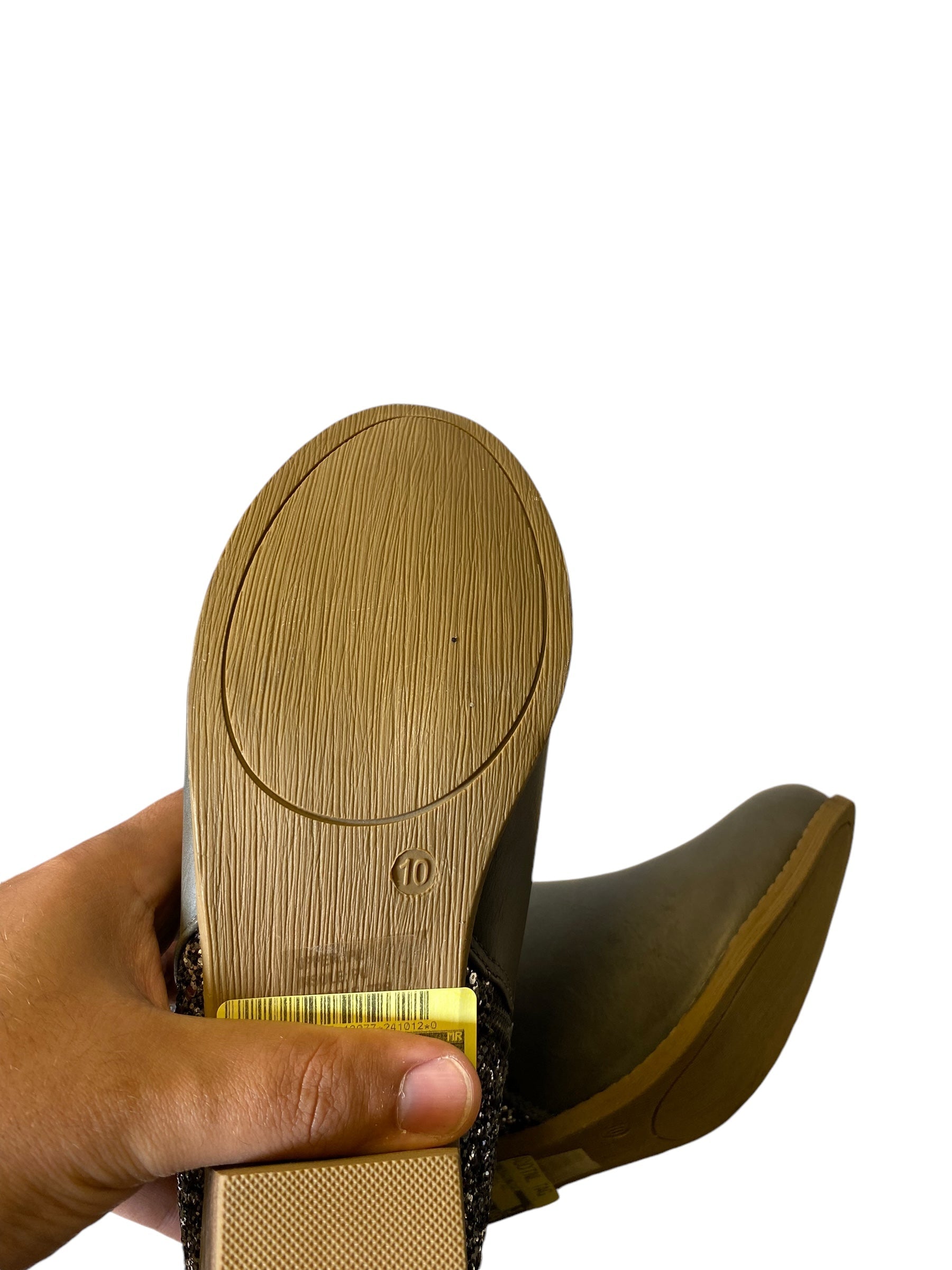 Boots Ankle Heels By Clothes Mentor In Grey & Silver, Size: 10