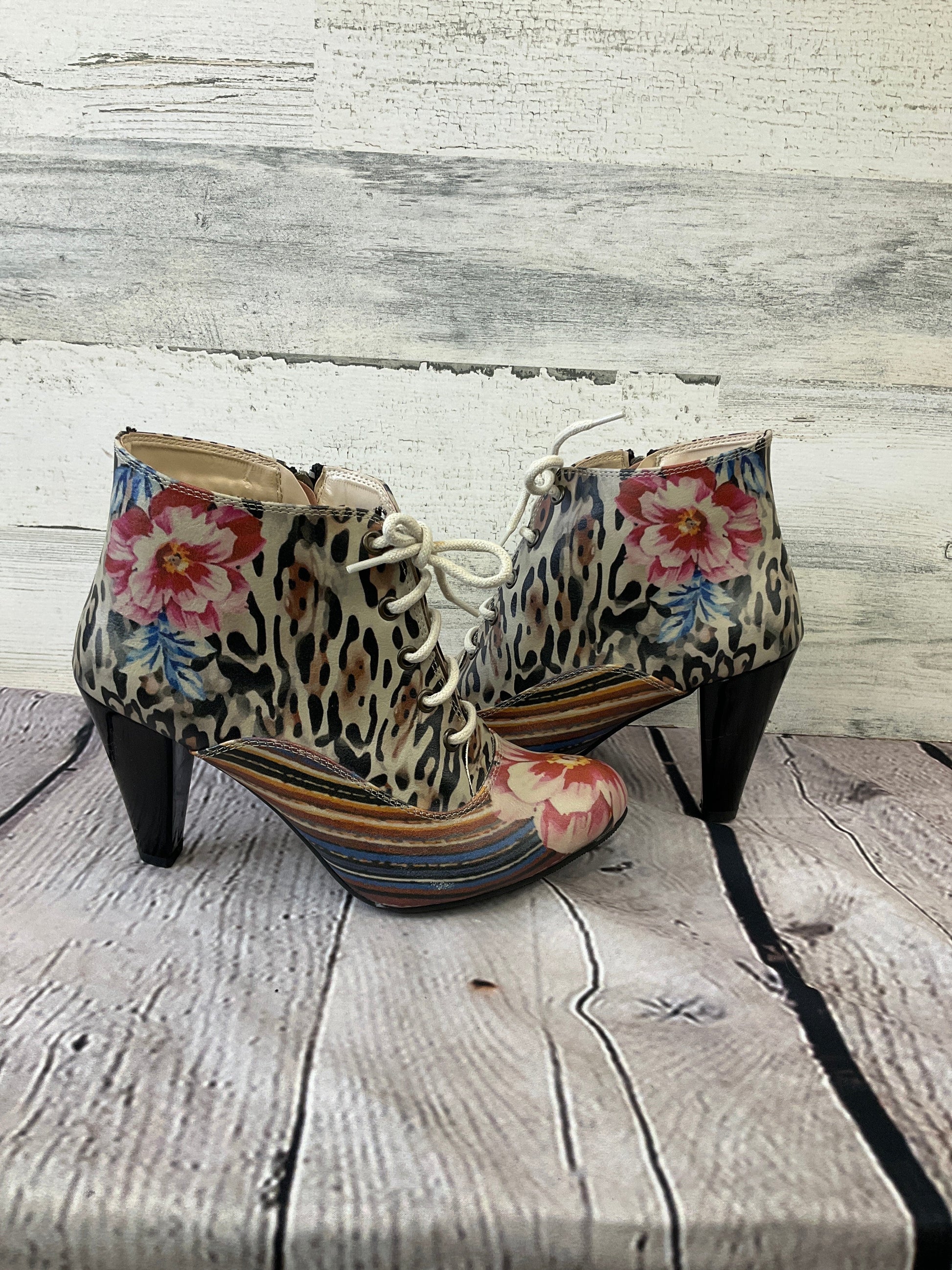 Boots Ankle Heels By Clothes Mentor In Multi-colored, Size: 8.5