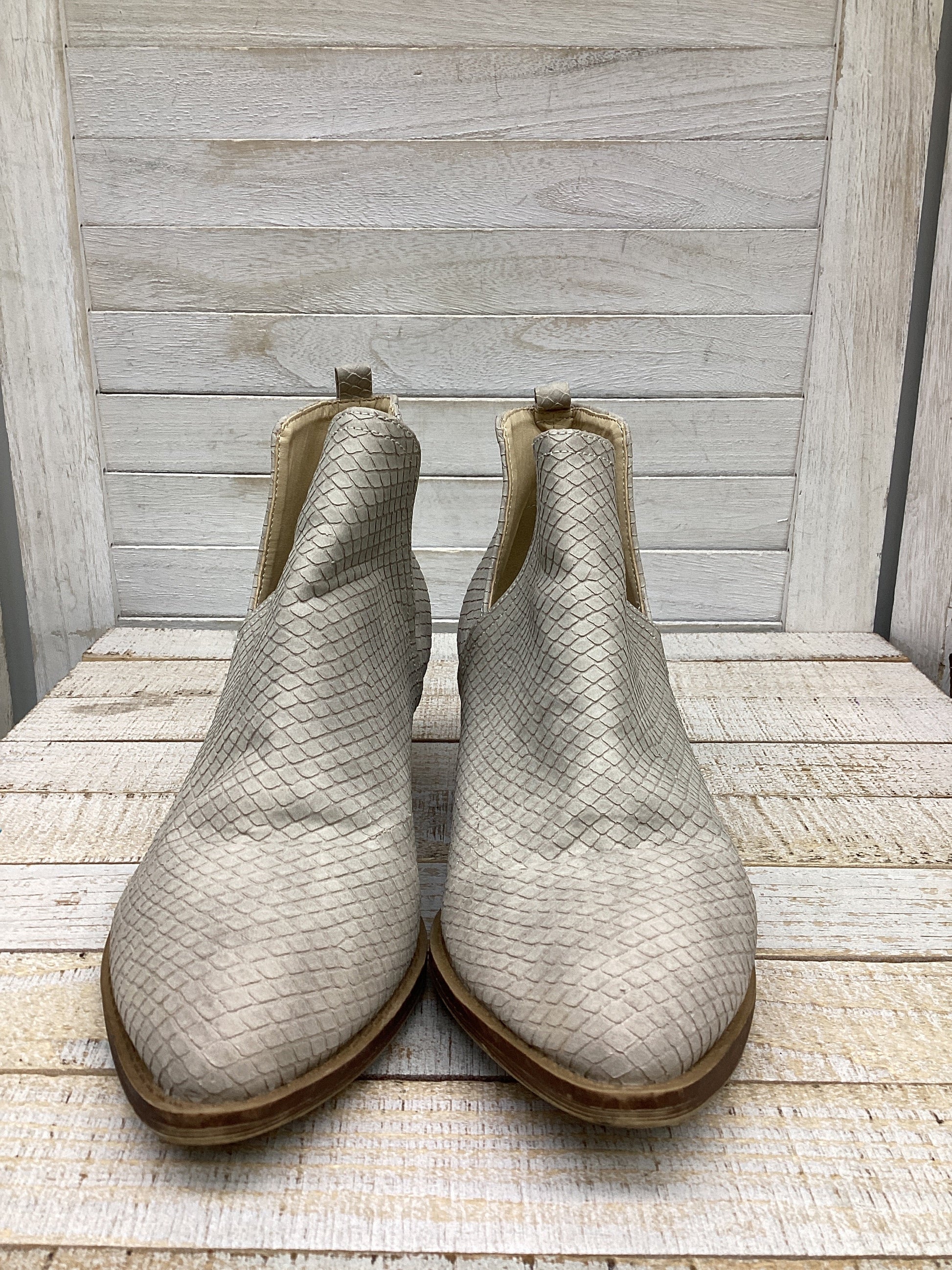 Boots Ankle Heels By Laundry In Grey, Size: 5.5