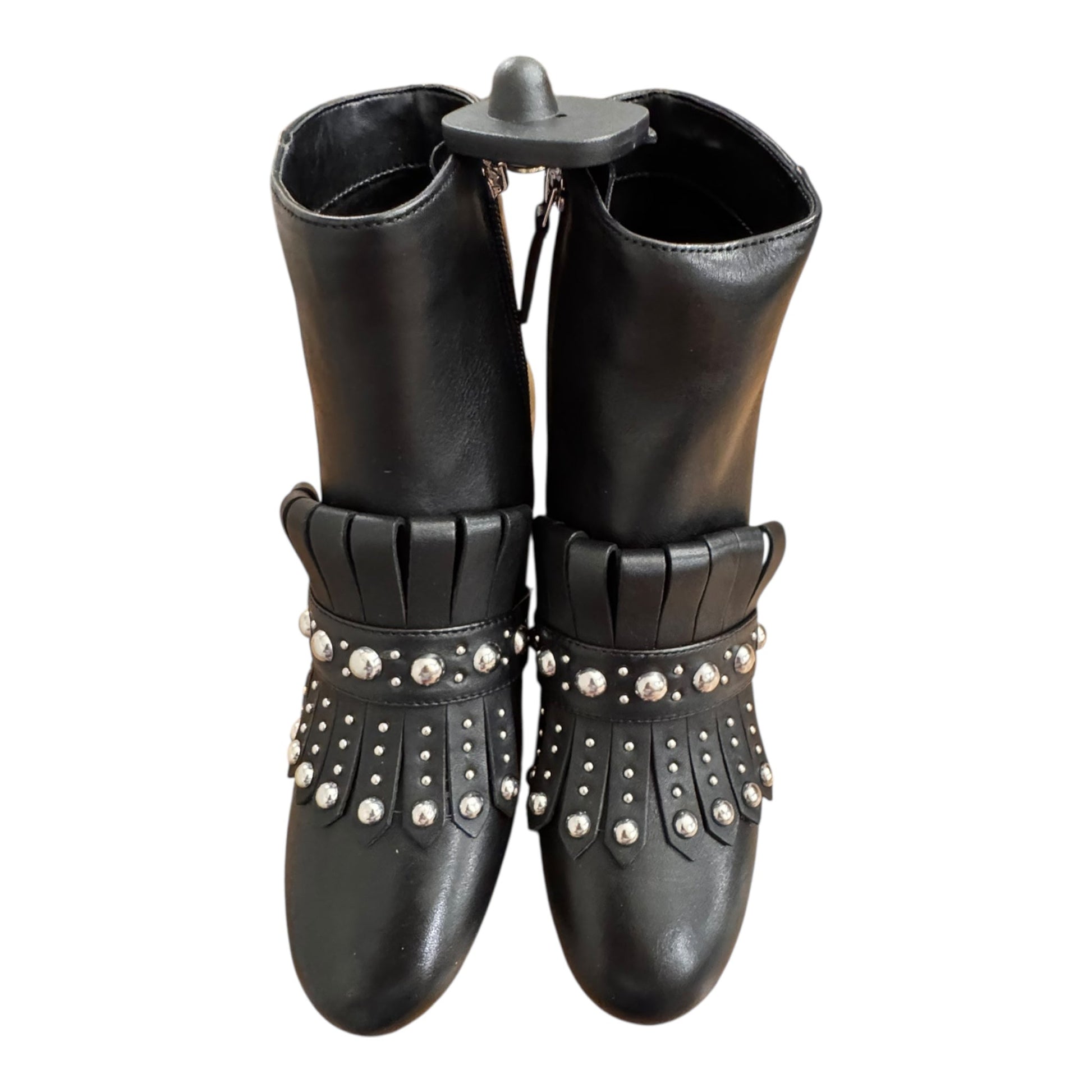 Boots Ankle Heels By Nine West In Black & Silver, Size:6.5