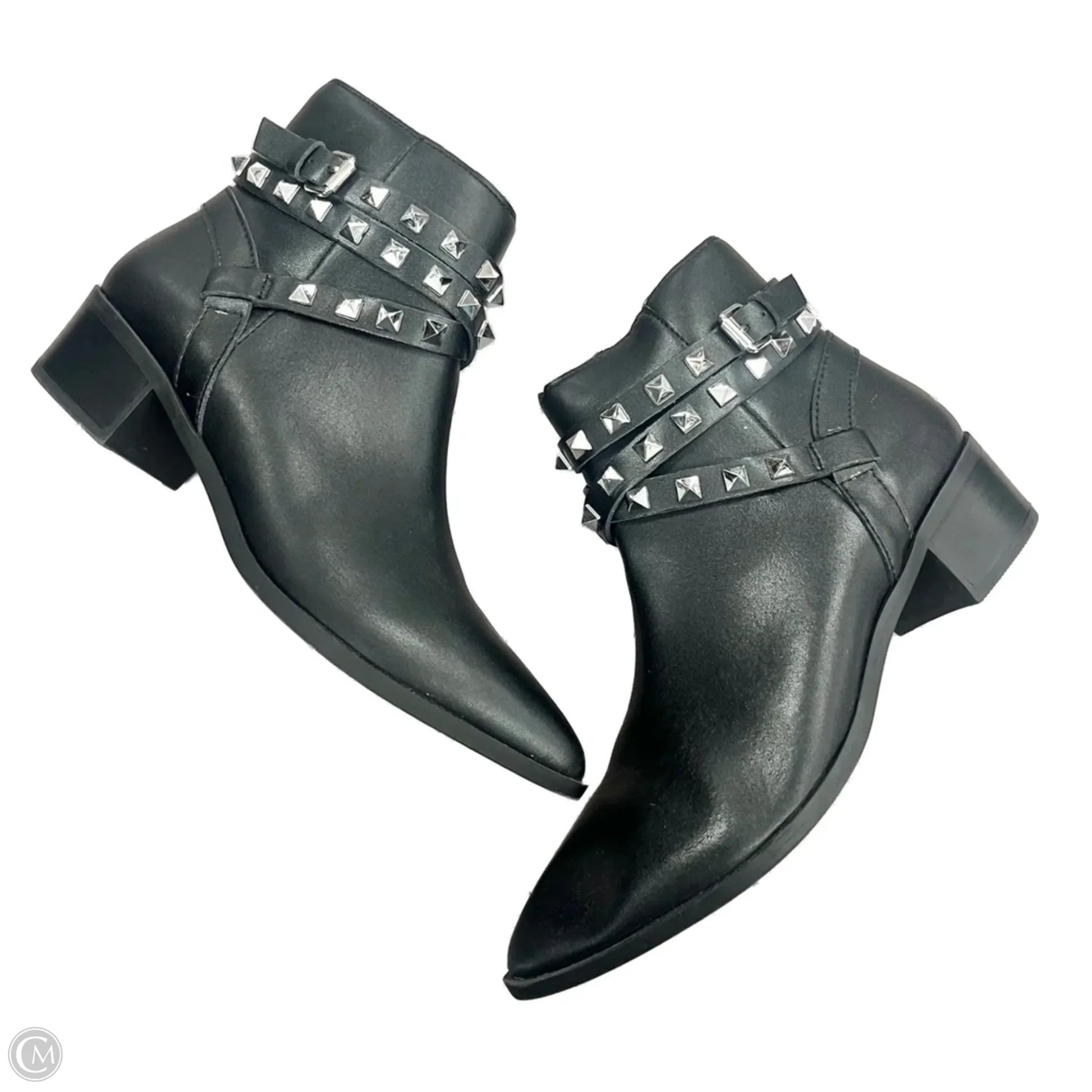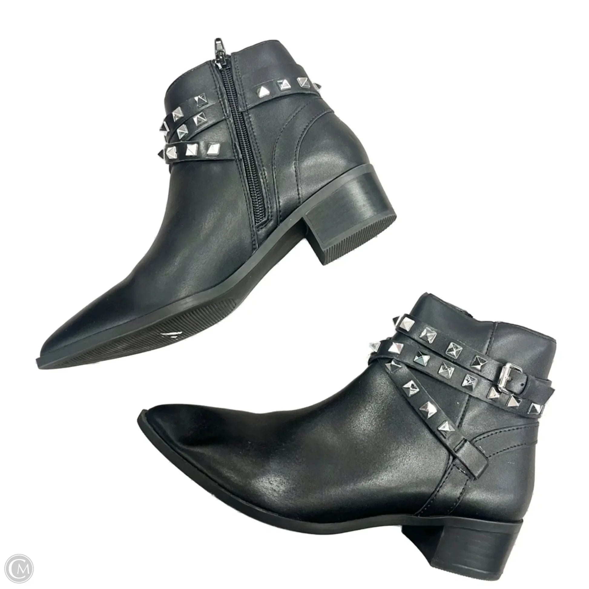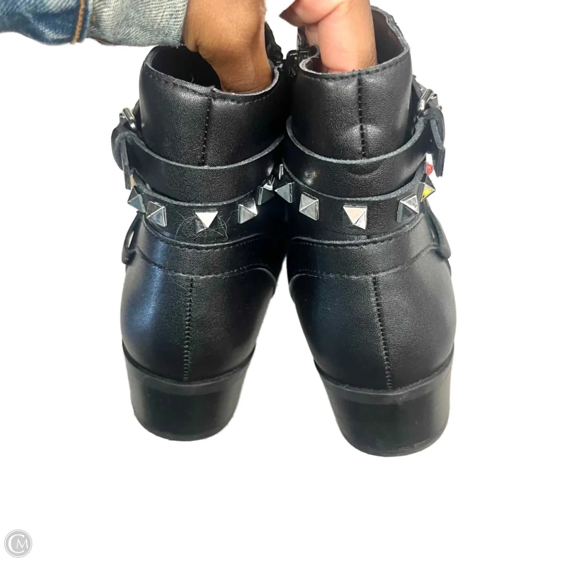 Boots Ankle Heels By Steve Madden In Black & Silver, Size: 6.5