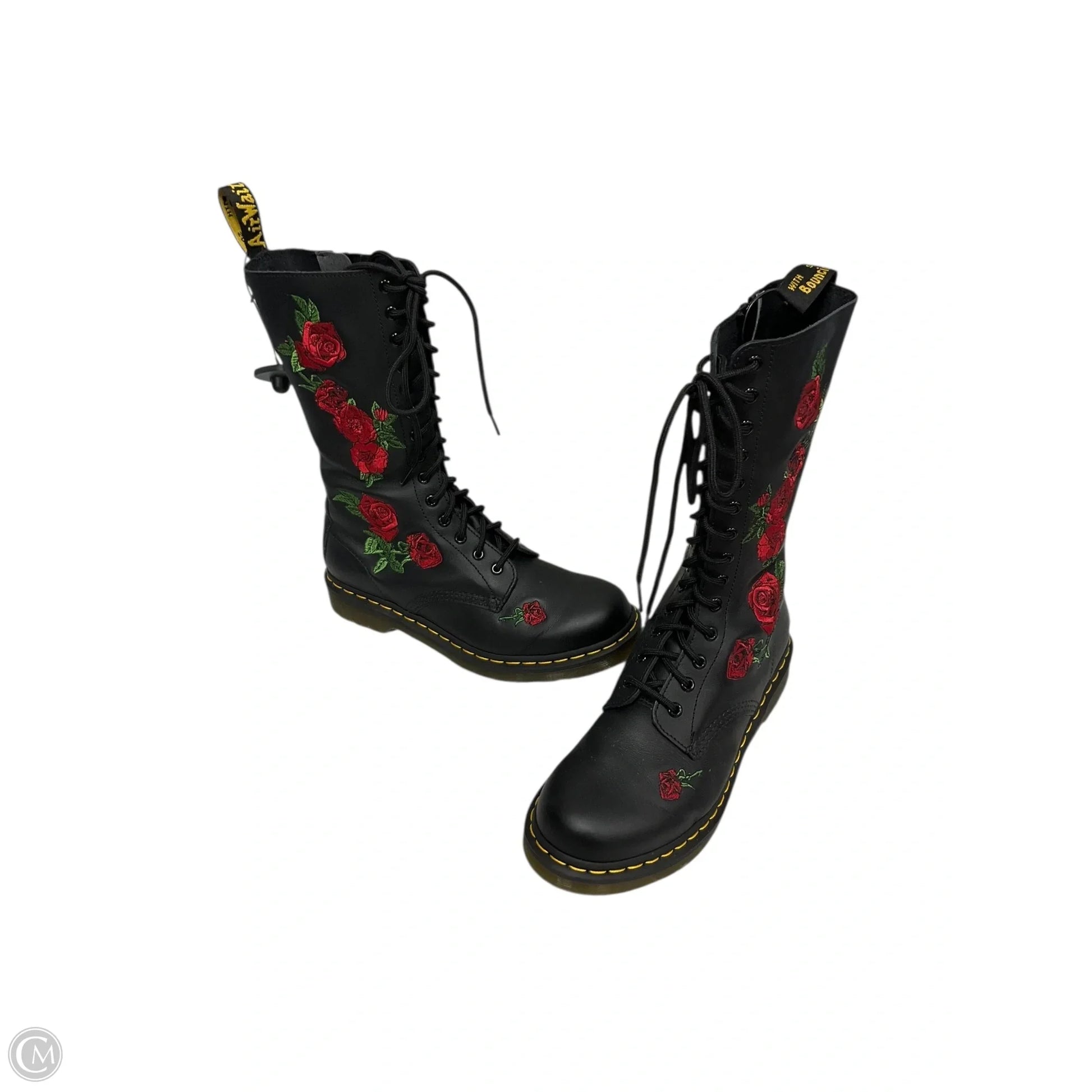 Step into the spotlight with these Dr. Martens combat boots in bold black & red. Unleash your fierce style in size 10. Dominate the streets with unmatched confidence and killer looks.