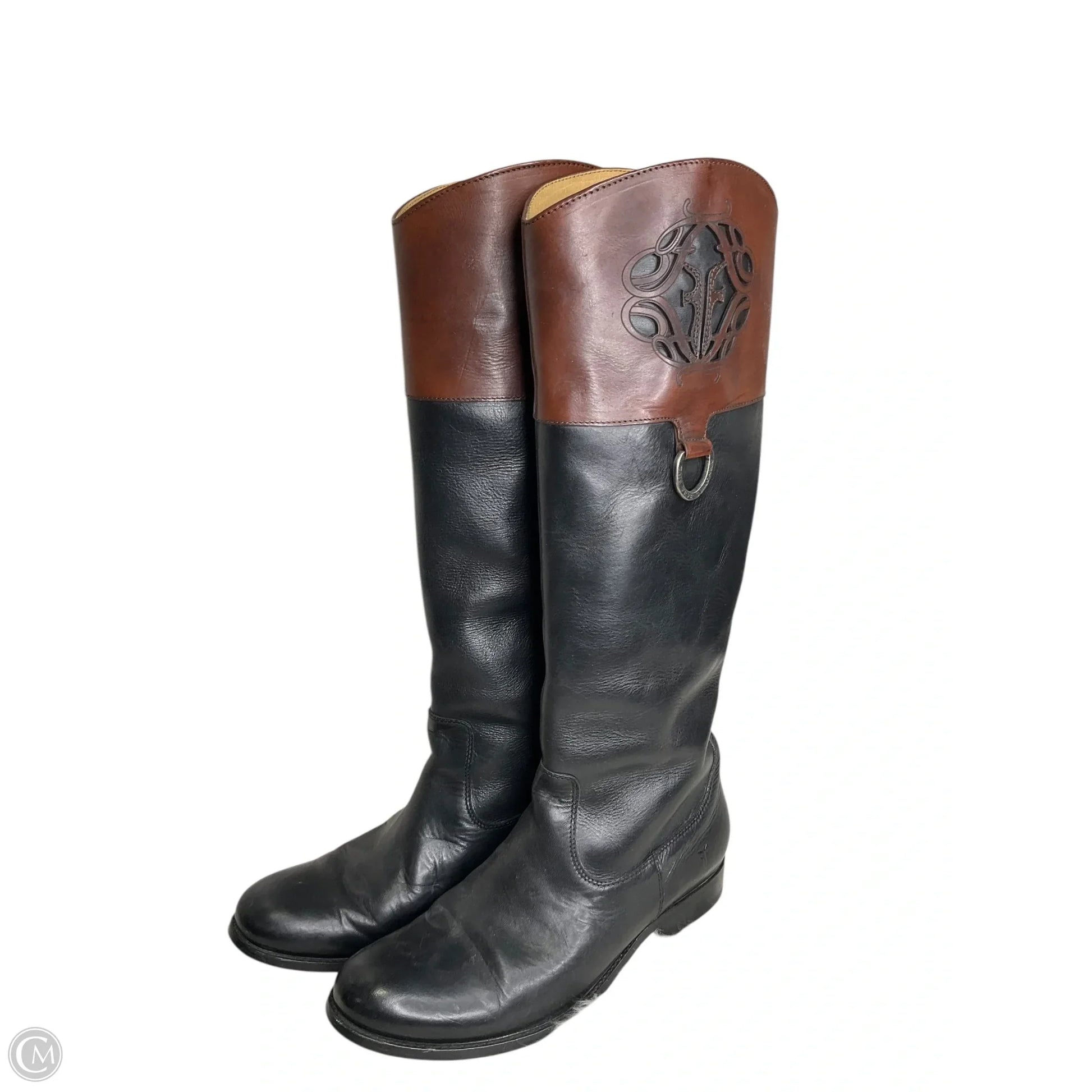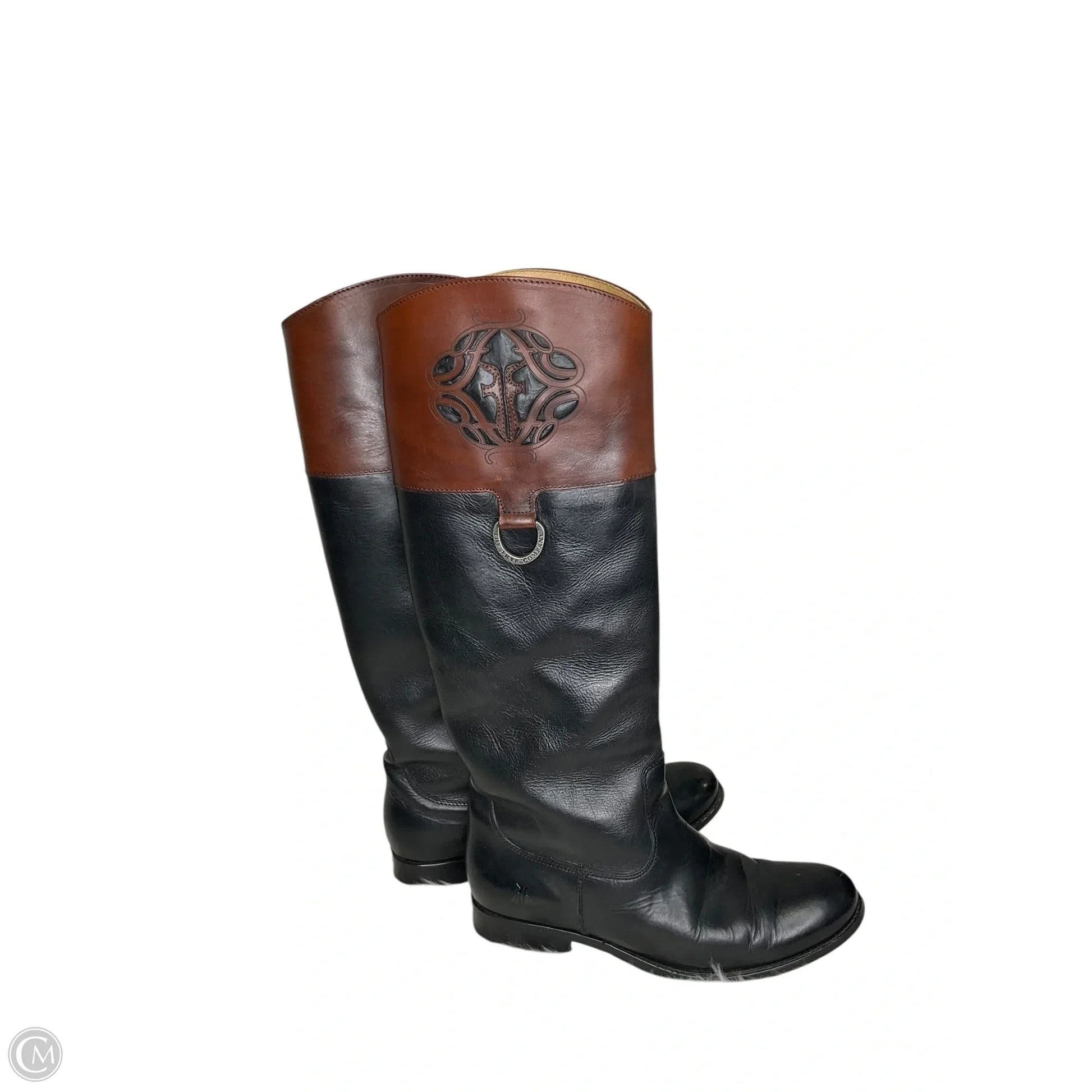 Boots Designer By Frye In Black & Brown, Size: 10
