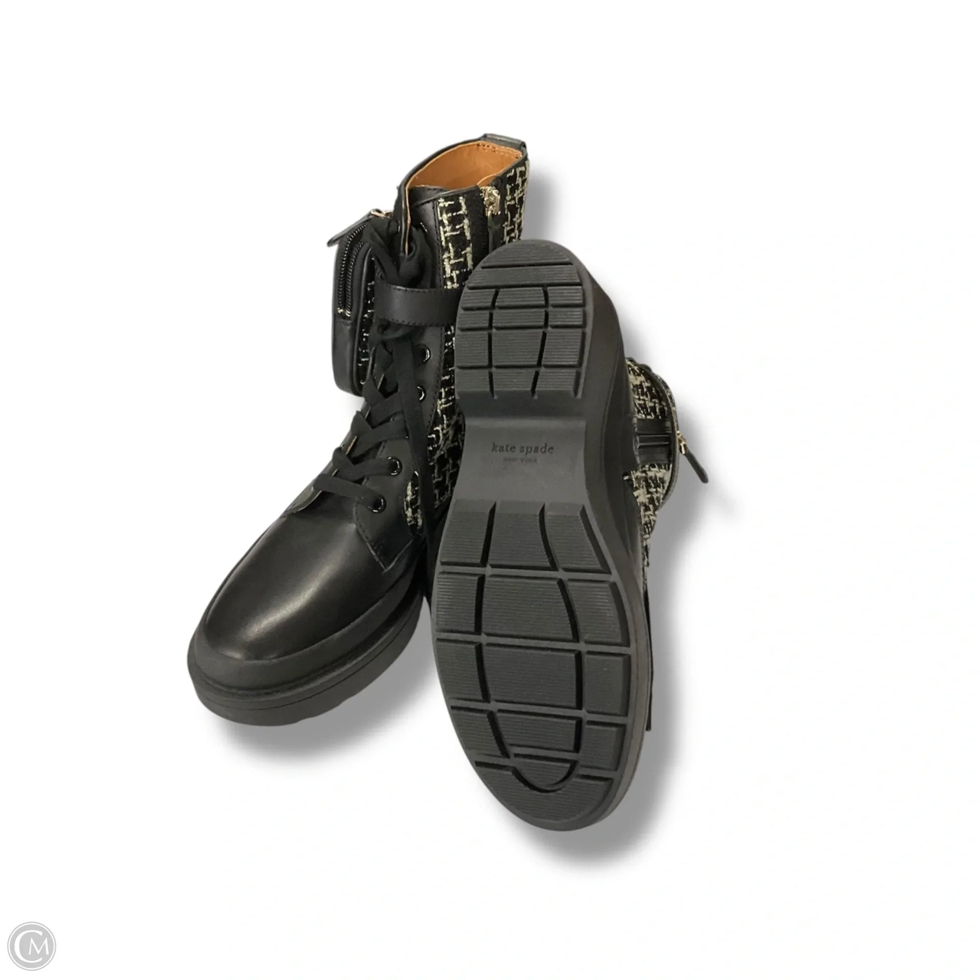 Boots Designer By Kate Spade In Black & Cream, Size: 9