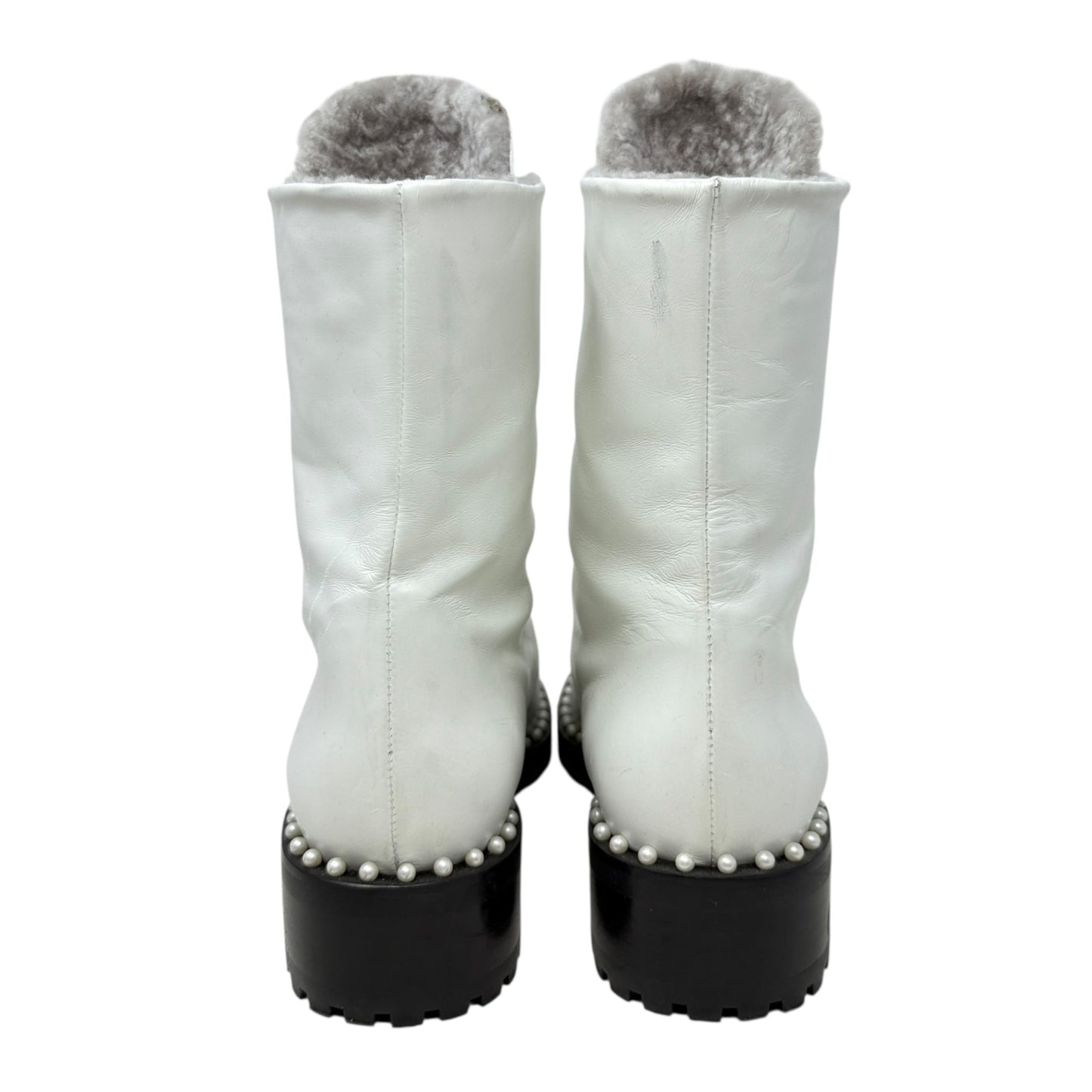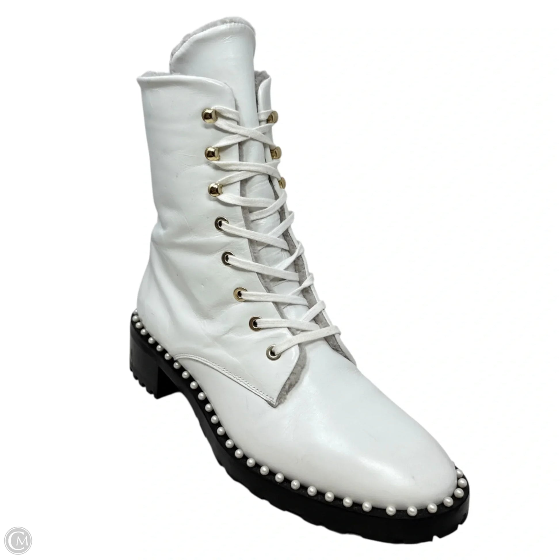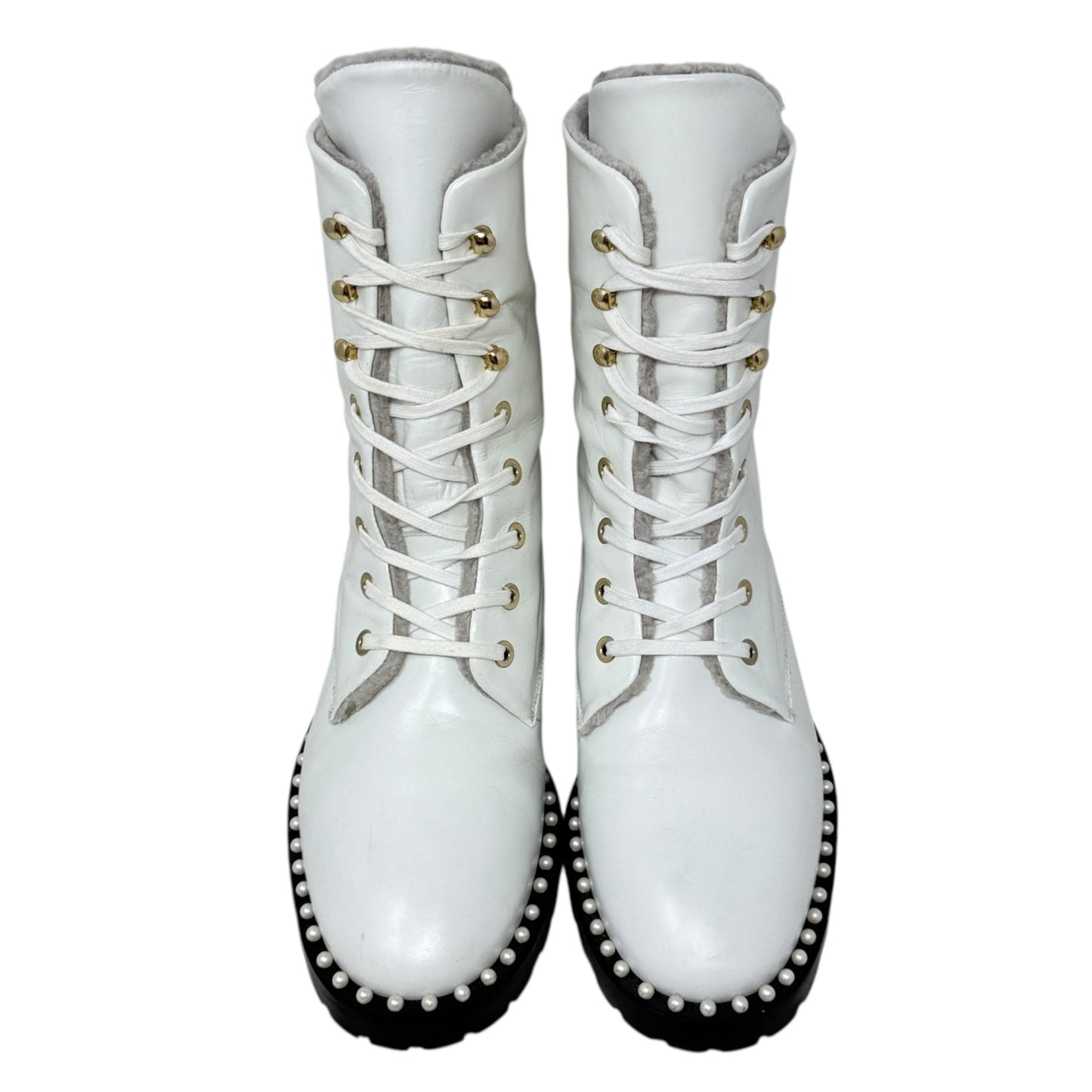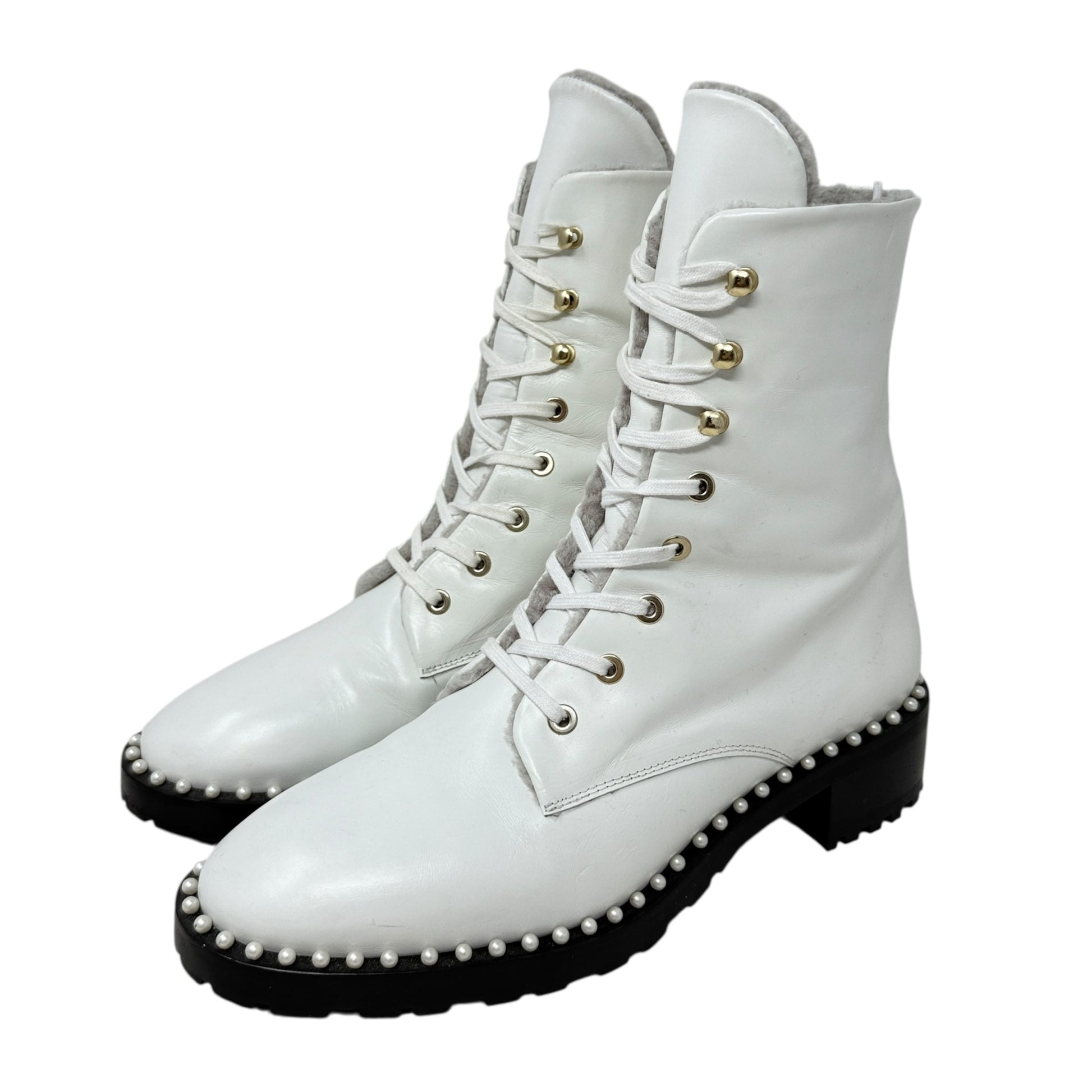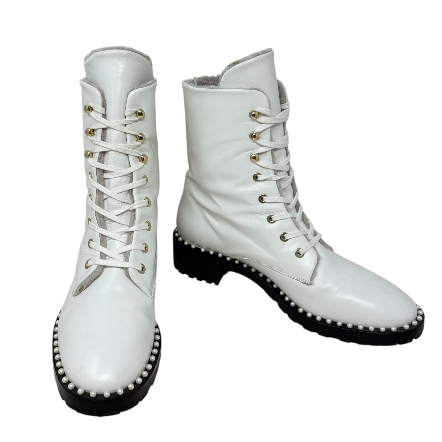 Sondra Nulogo Pearl Embellished Booties Designer By Stuart Weitzman In White, Size: 8
