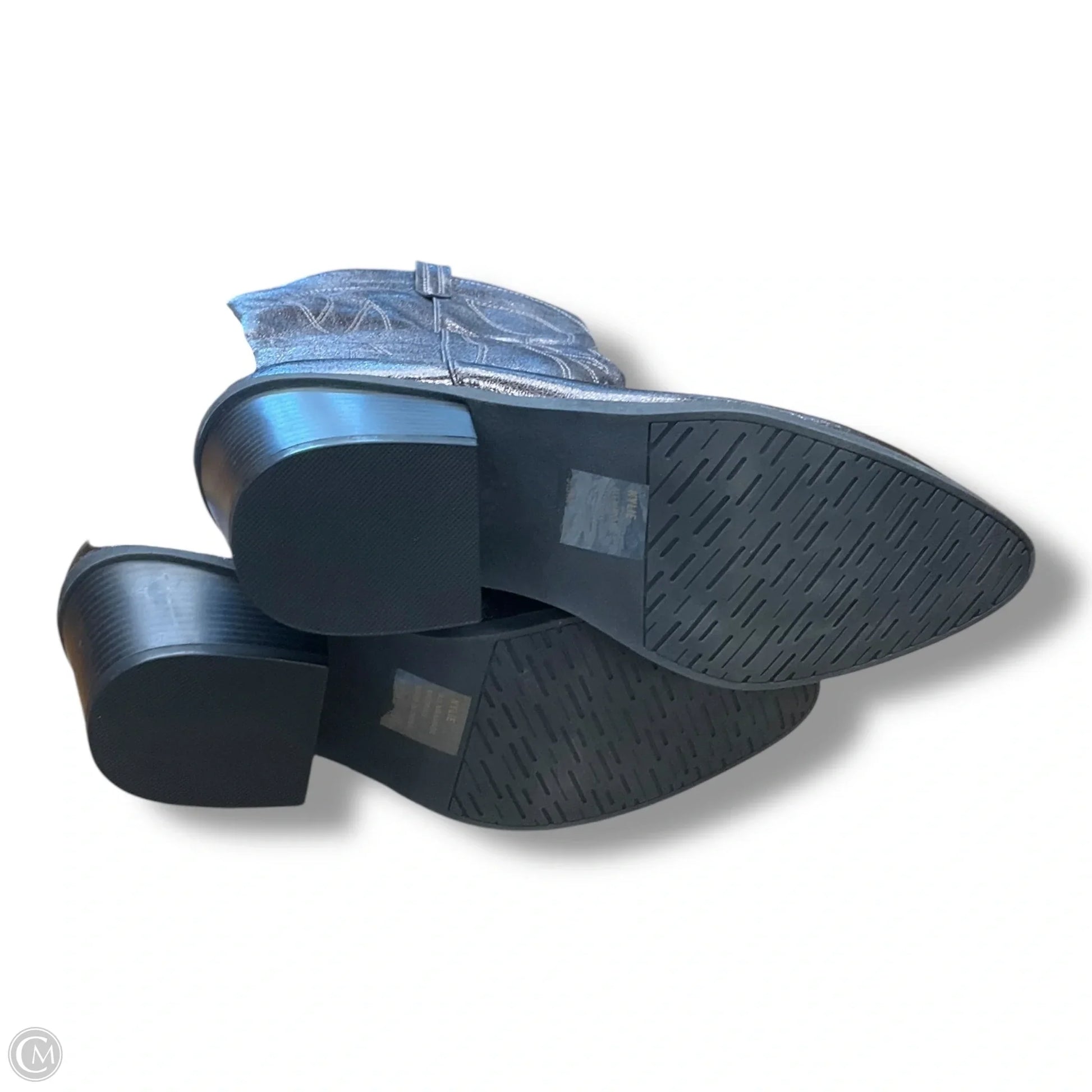 Boots Knee Heels By Clothes Mentor In Grey, Size: 9.5