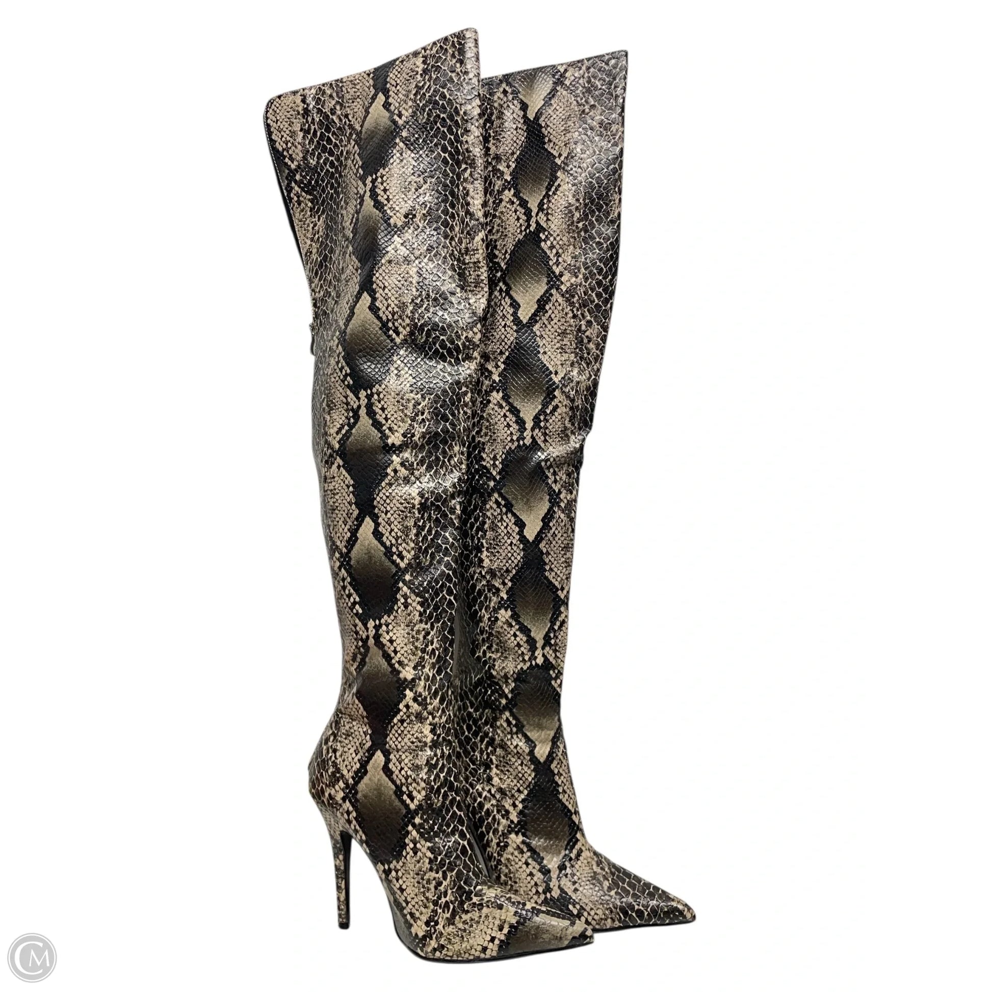 Boots Knee Heels By Clothes Mentor In Snakeskin Print, Size: 7.5