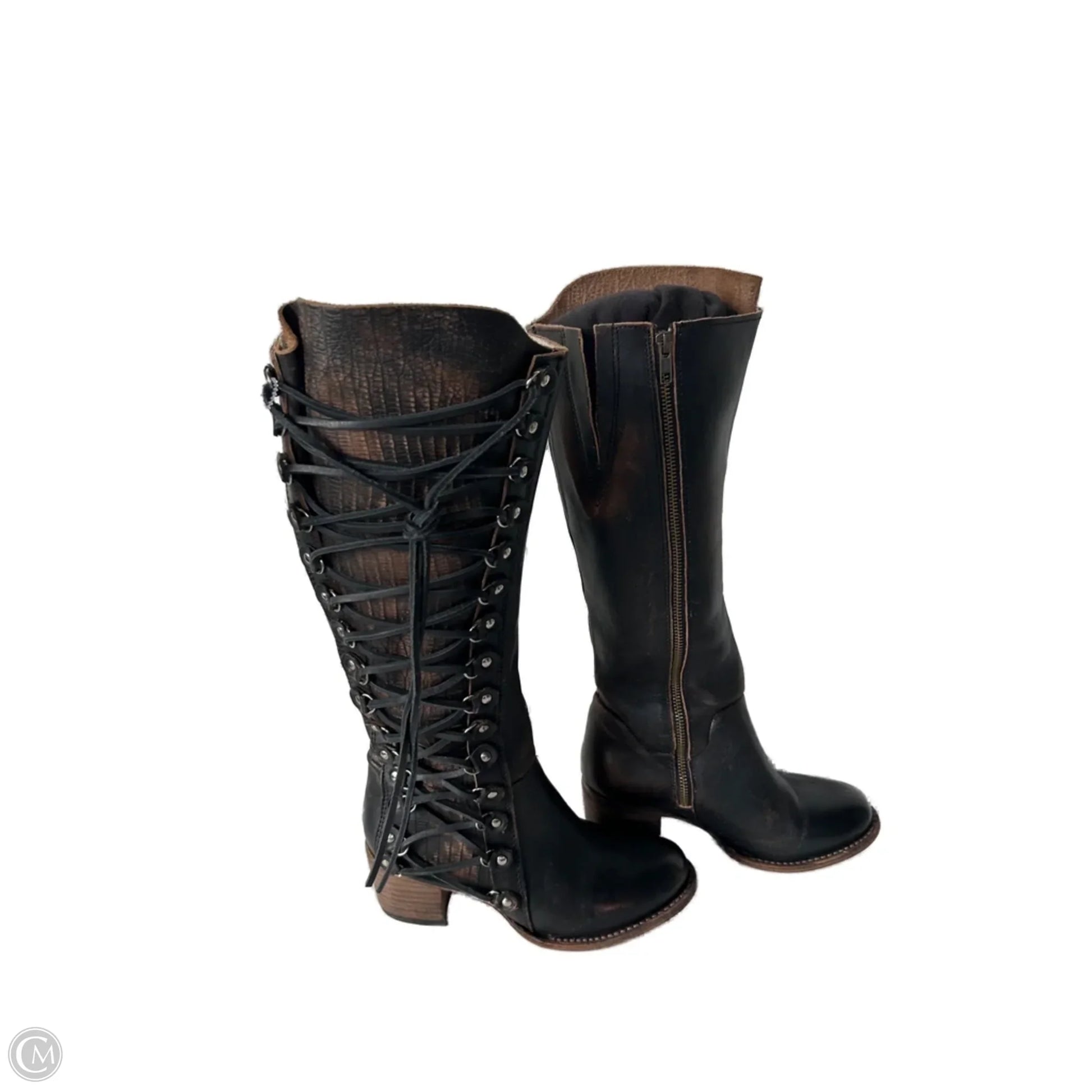 Boots Knee Heels By Freebird In Brown, Size: 7