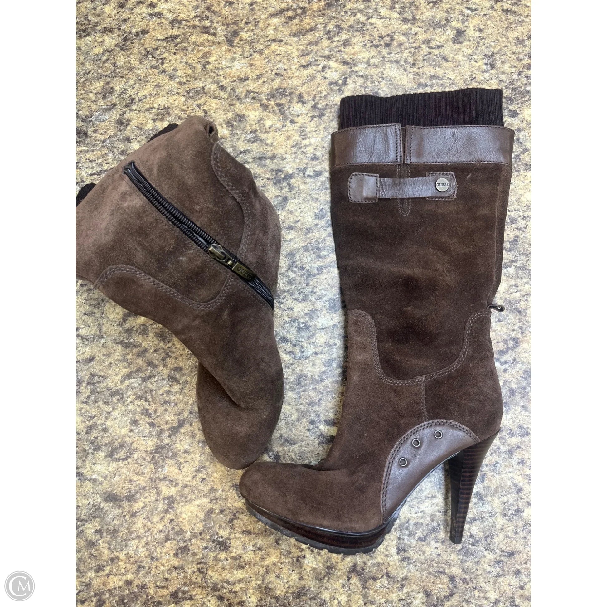 Boots Knee Heels By Guess In Brown, Size: 7.5