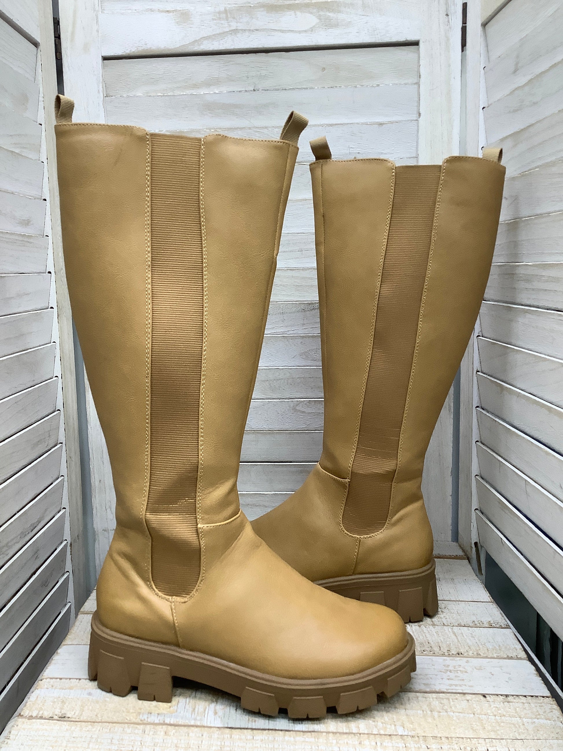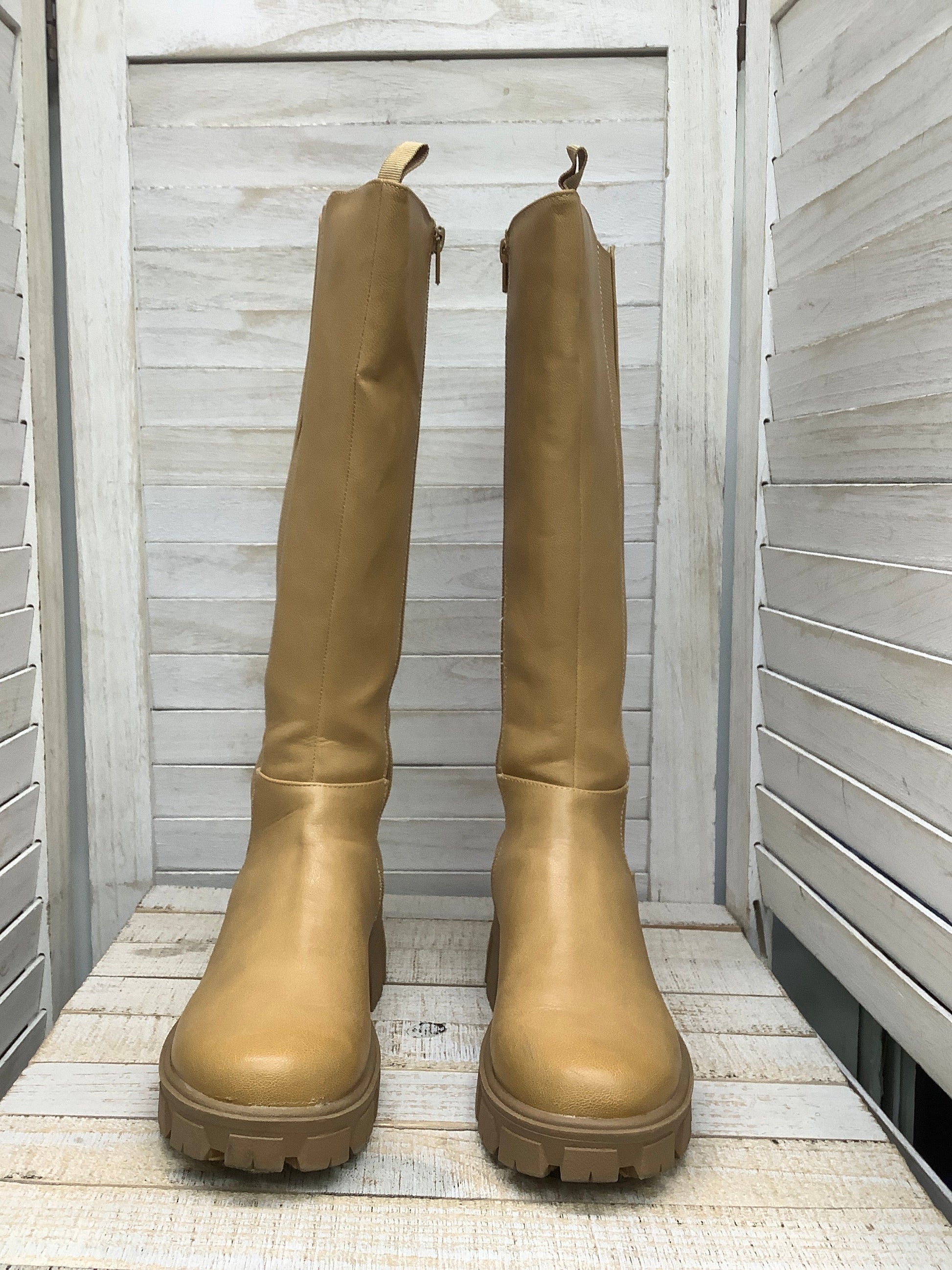 Boots Knee Heels By Sugar In Brown, Size: 7