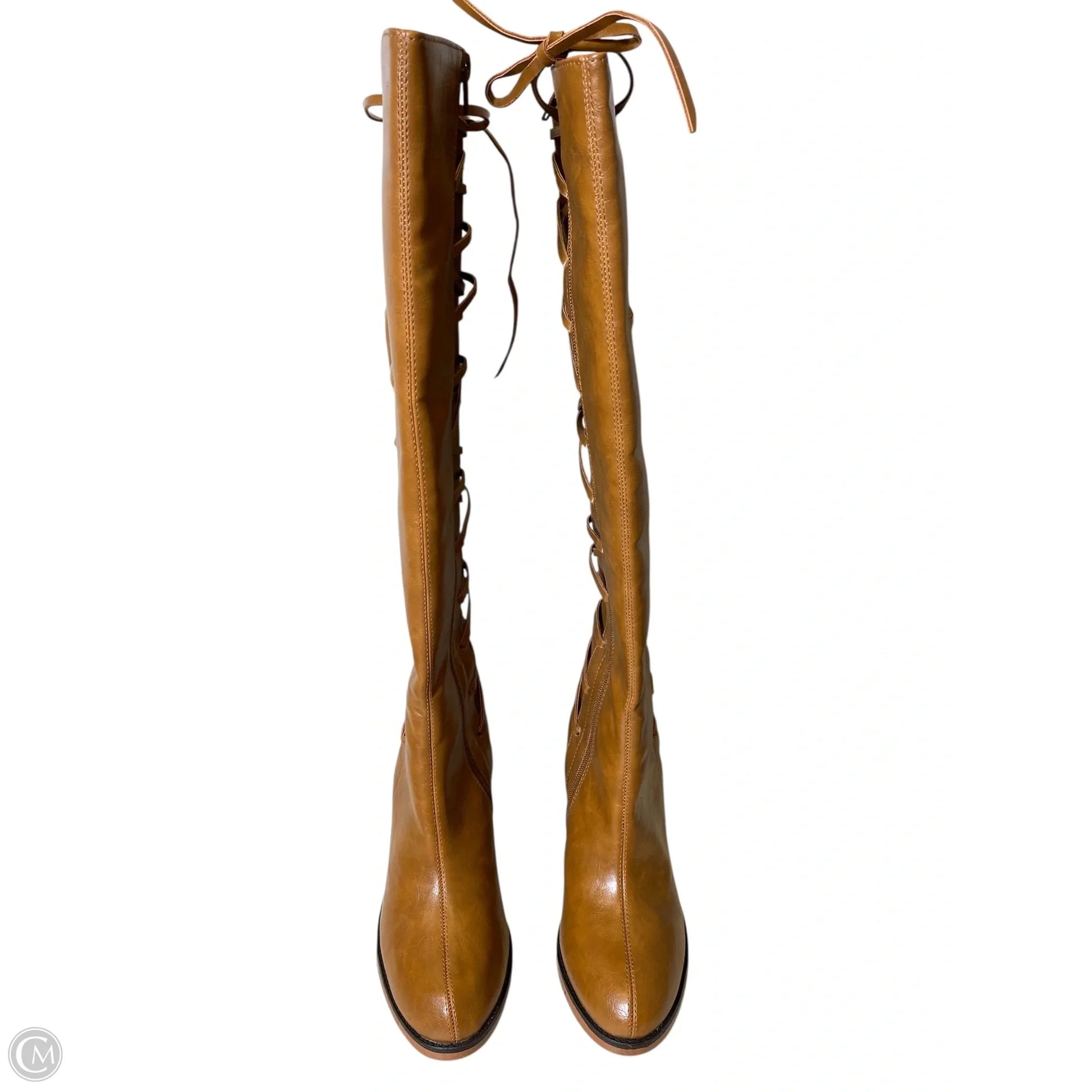 Boots Knee Heels By Venus In Brown, Size: 8