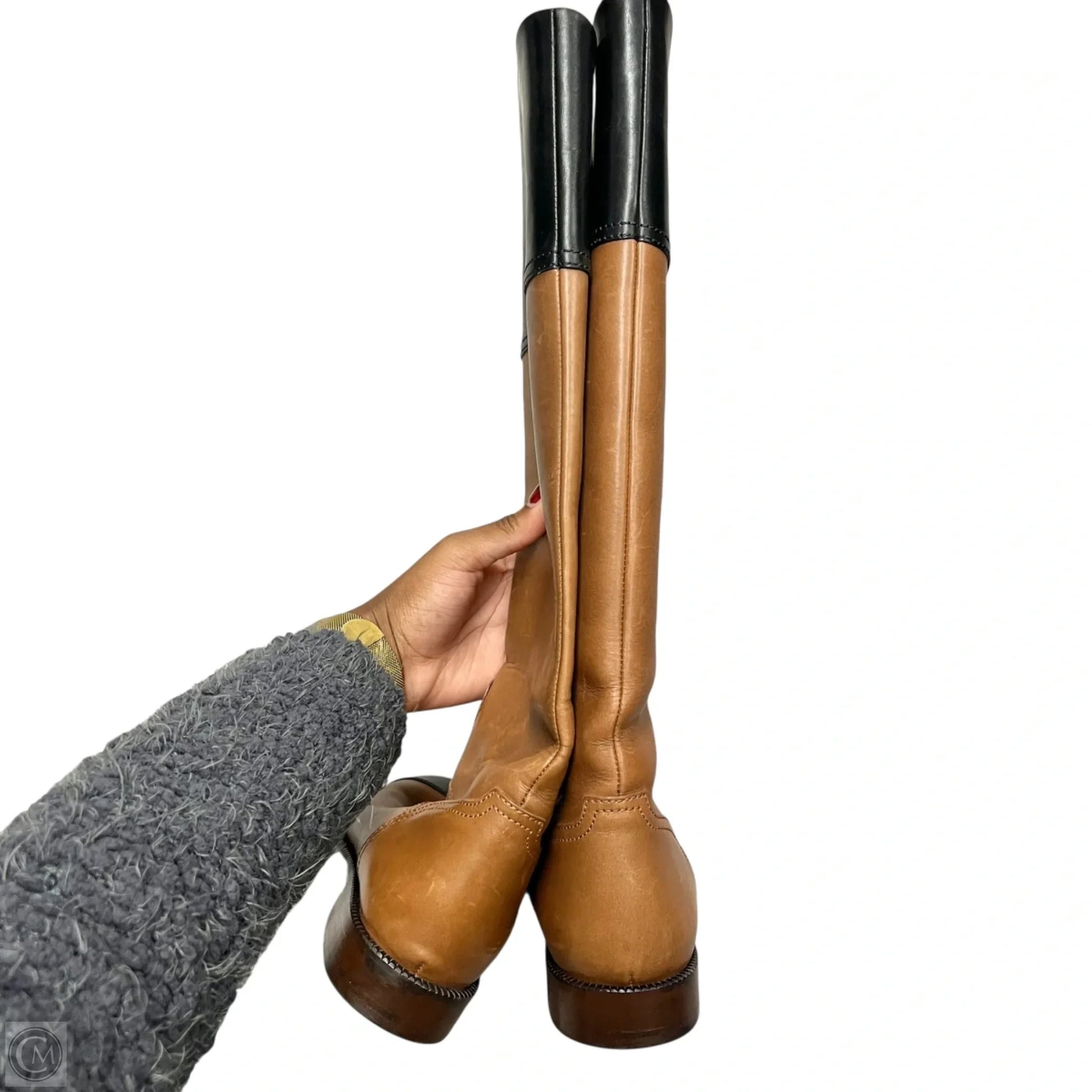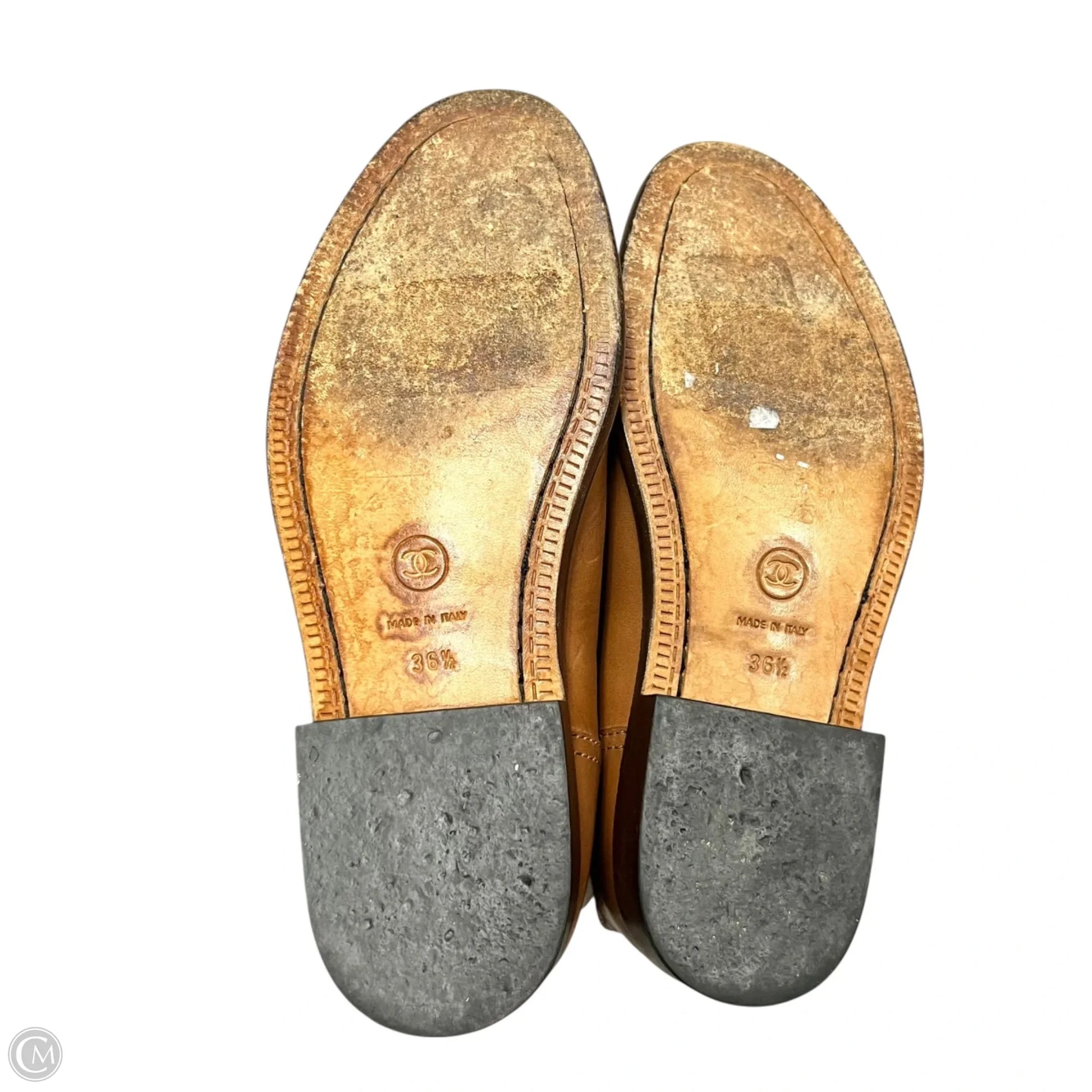 Boots Luxury Designer By Chanel In Brown, Size: 6.5