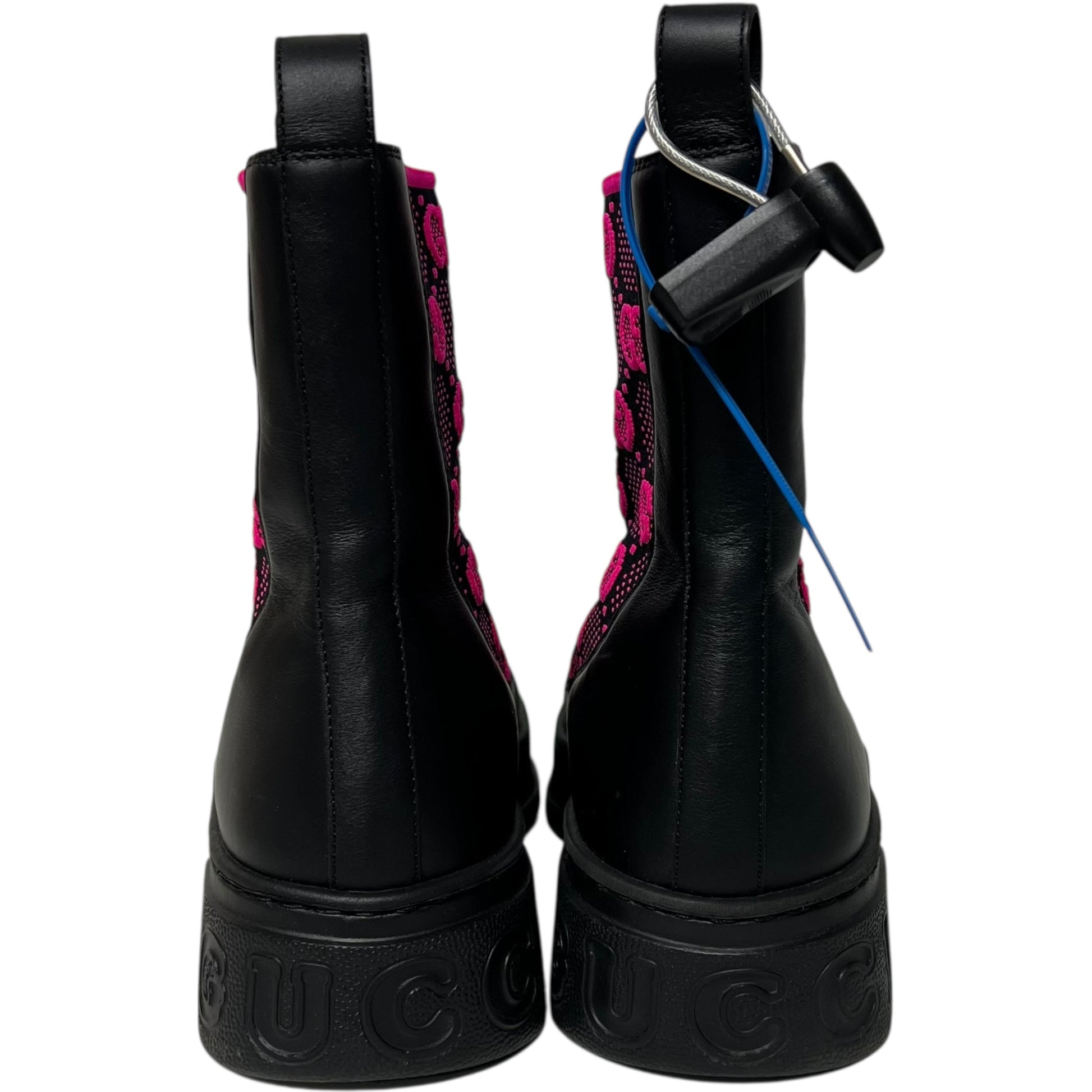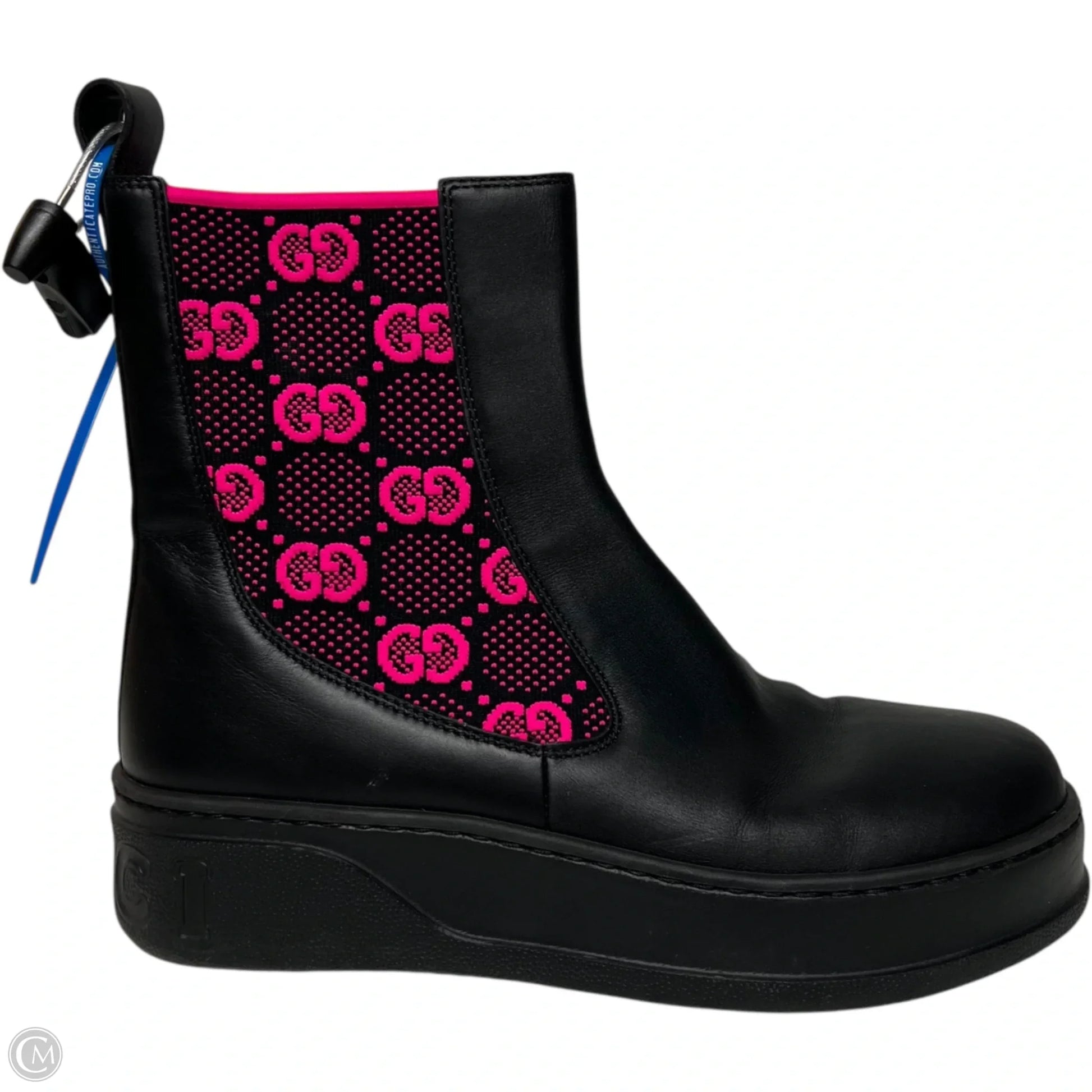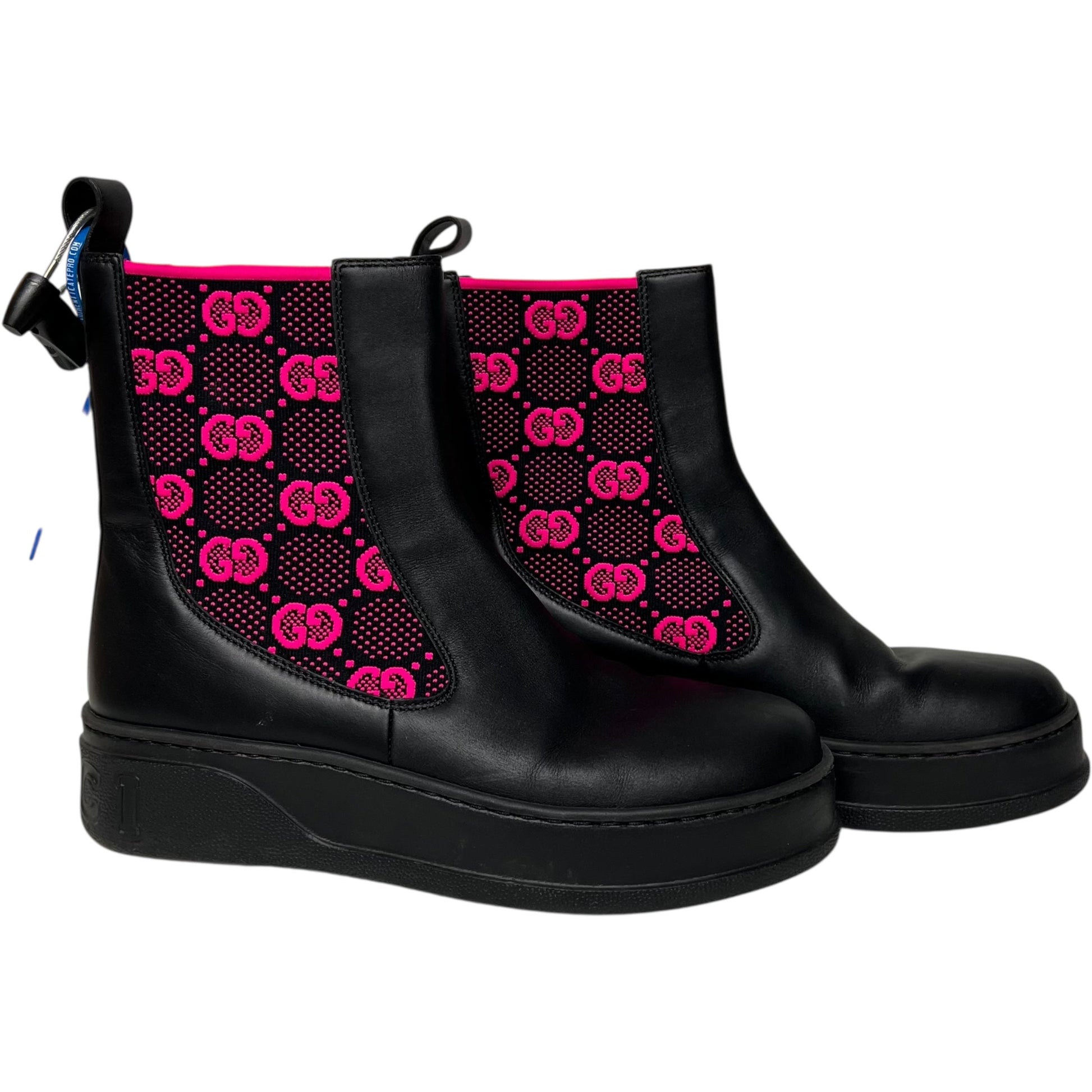Boots Luxury Designer By Gucci In Black & Pink, Size: 9