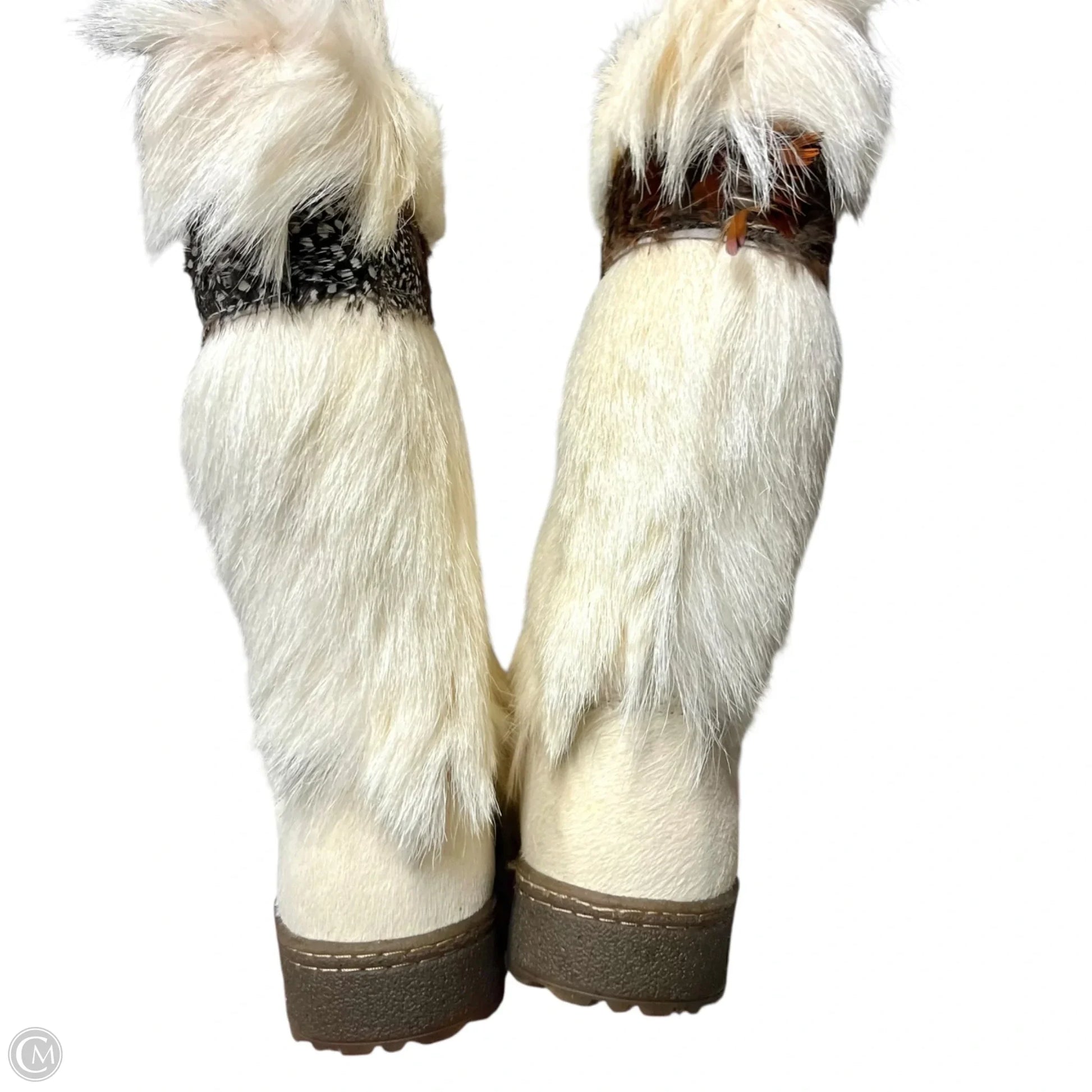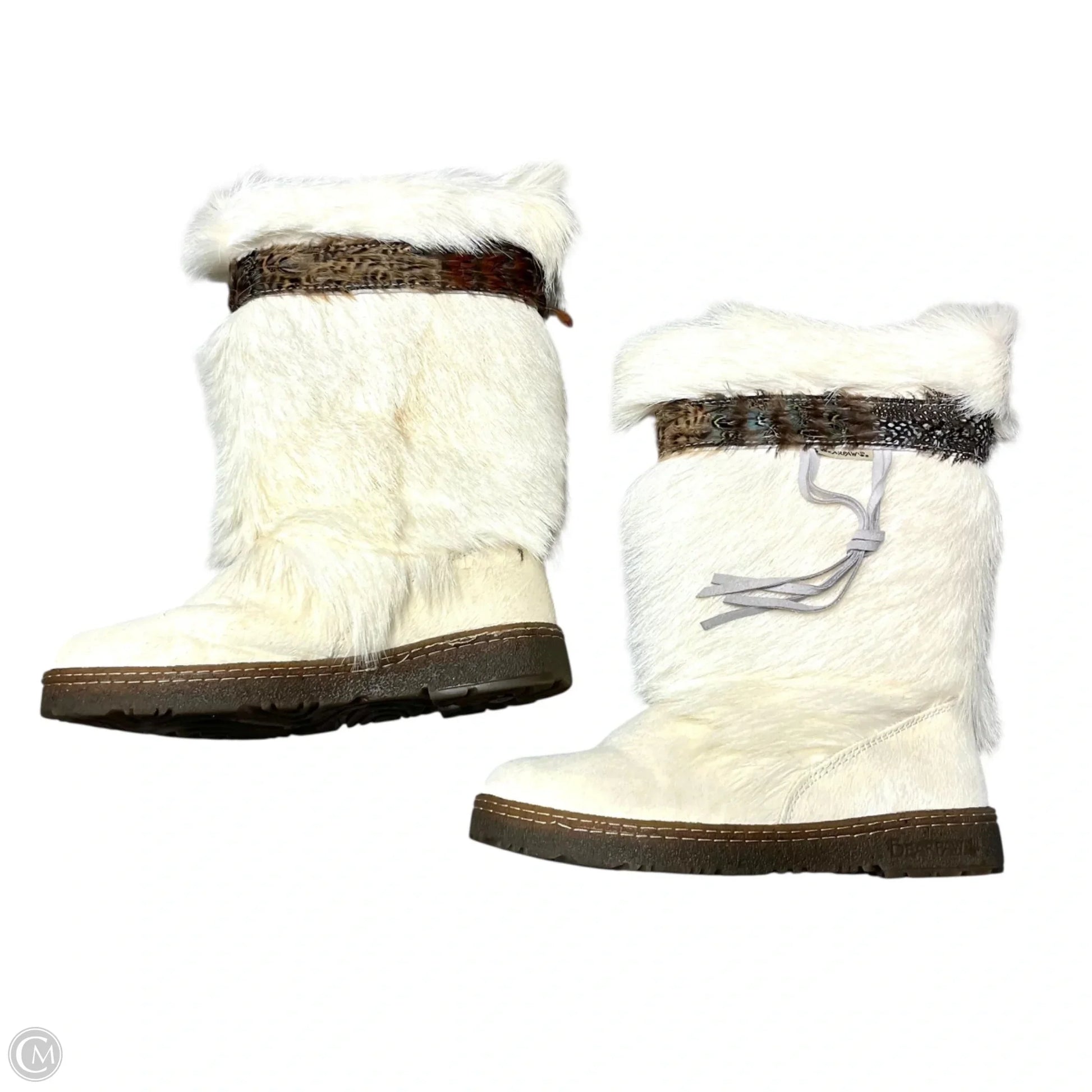 Boots Mid-calf Flats By Bearpaw In Cream & Tan, Size: 12