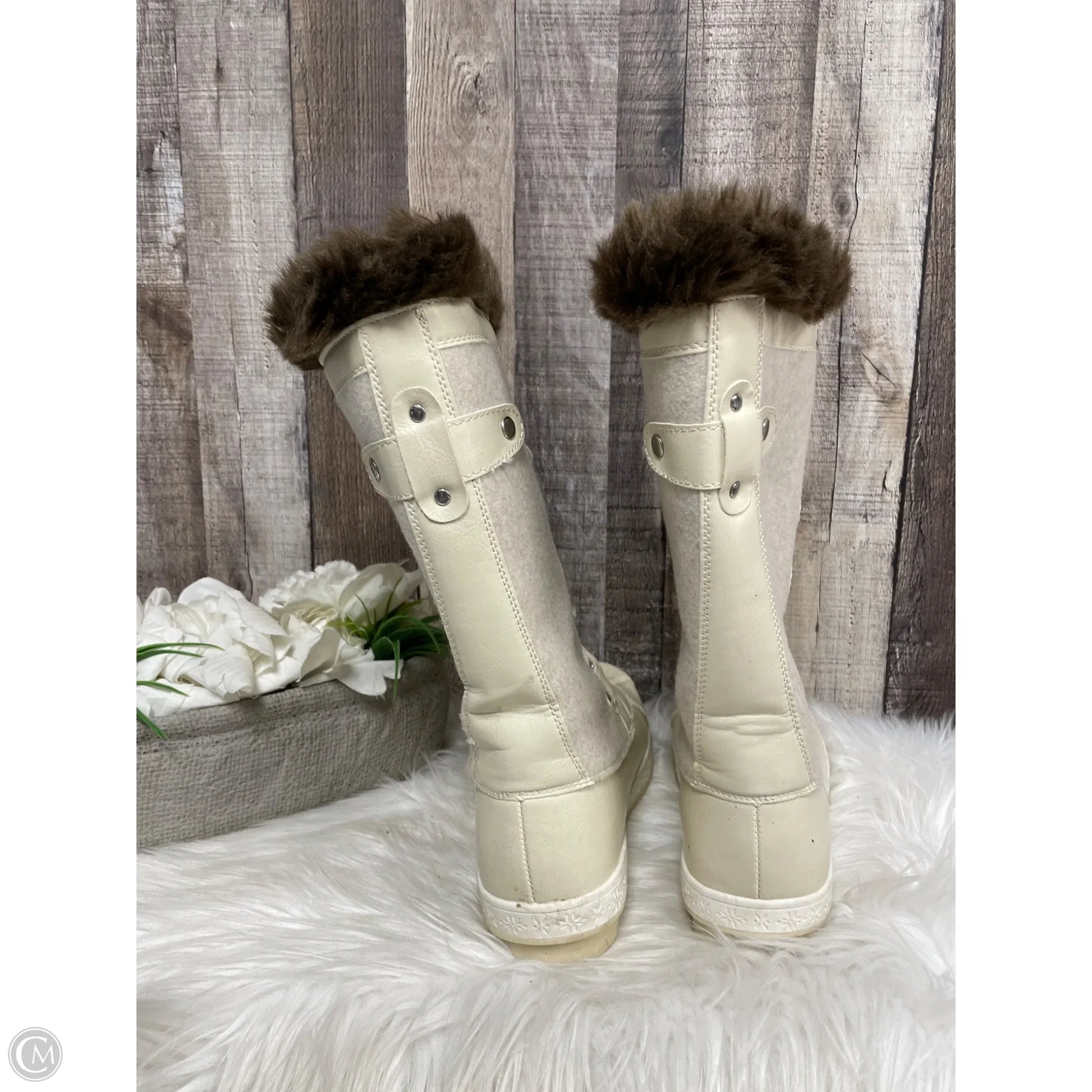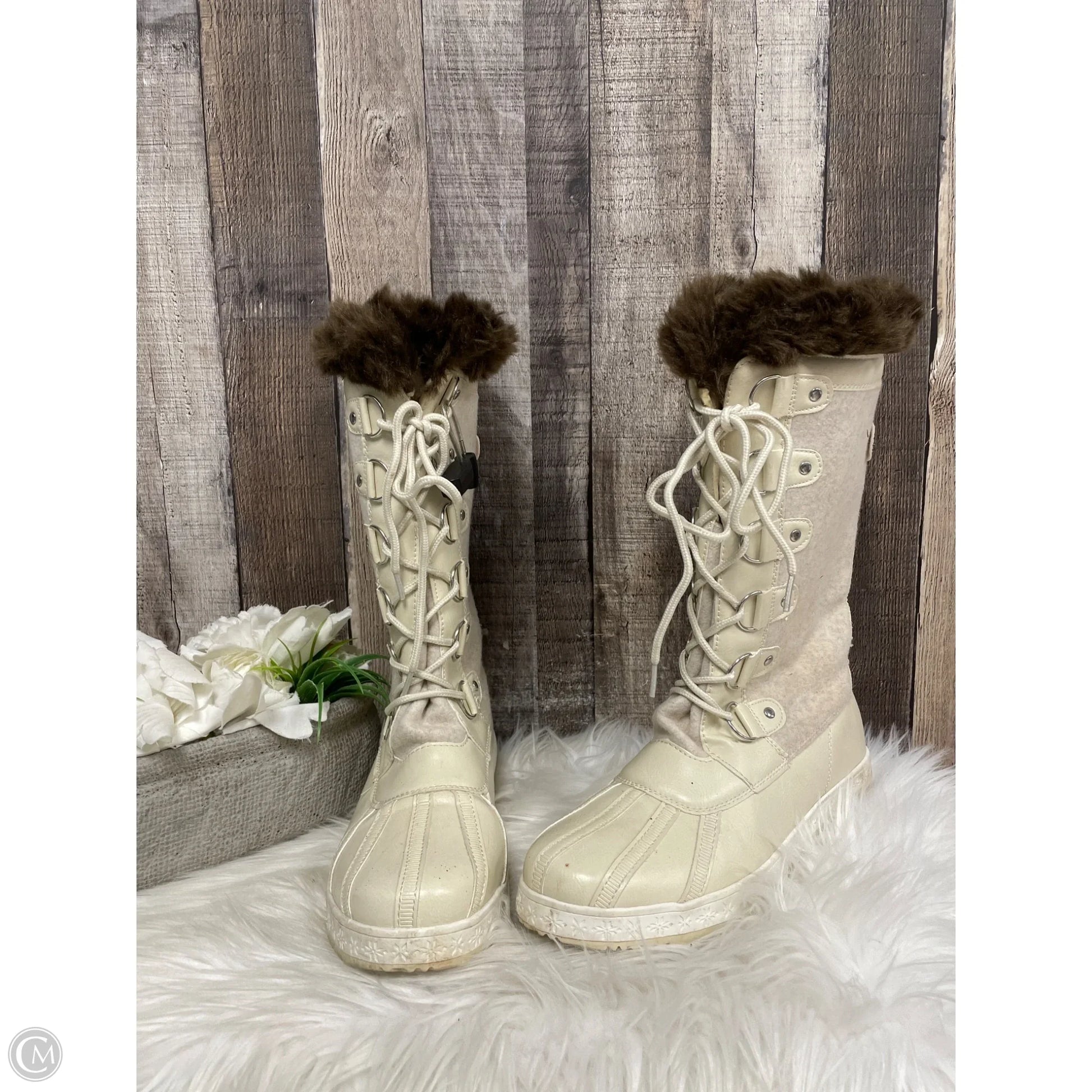 Boots Mid-calf Flats By Shoedazzle In Cream, Size: 8