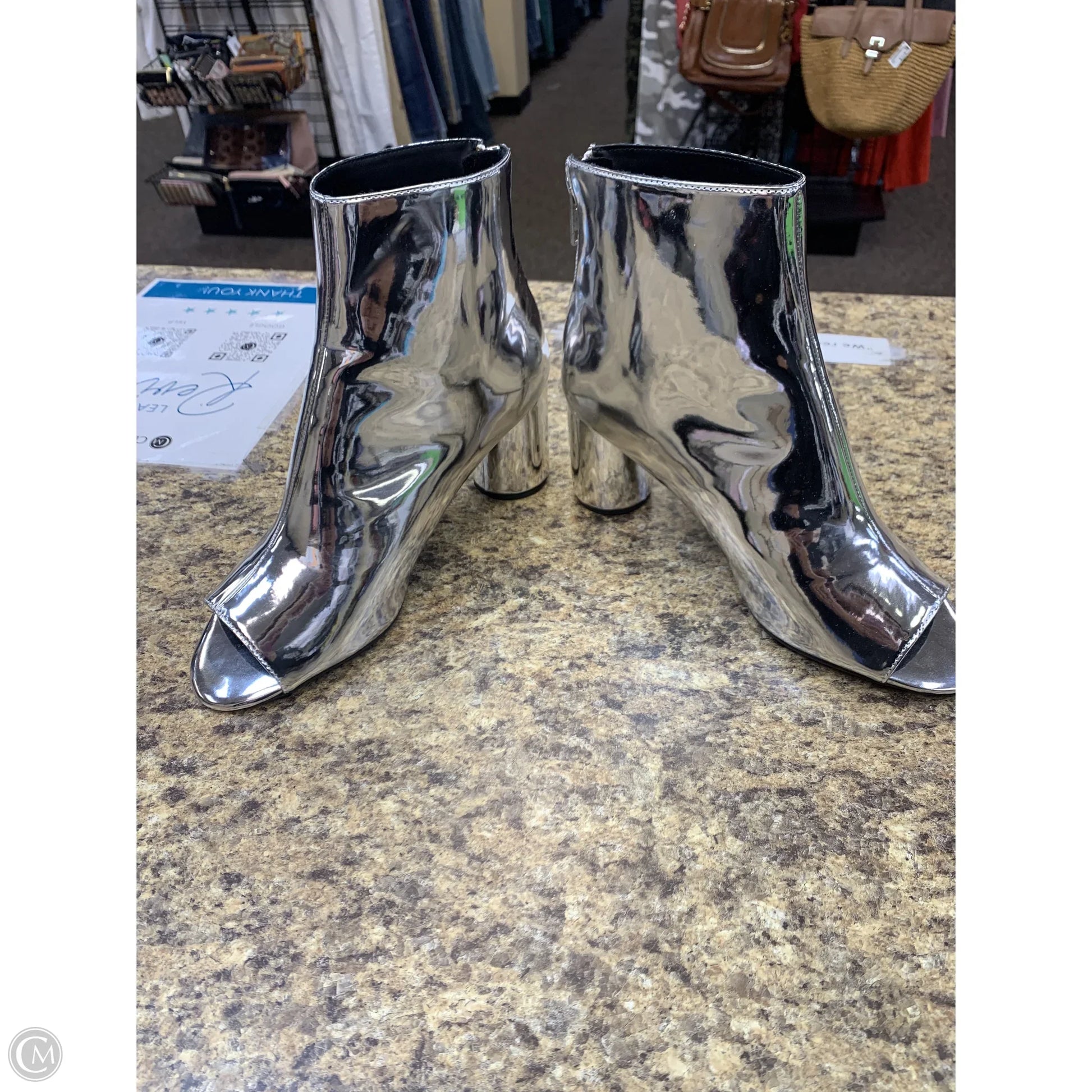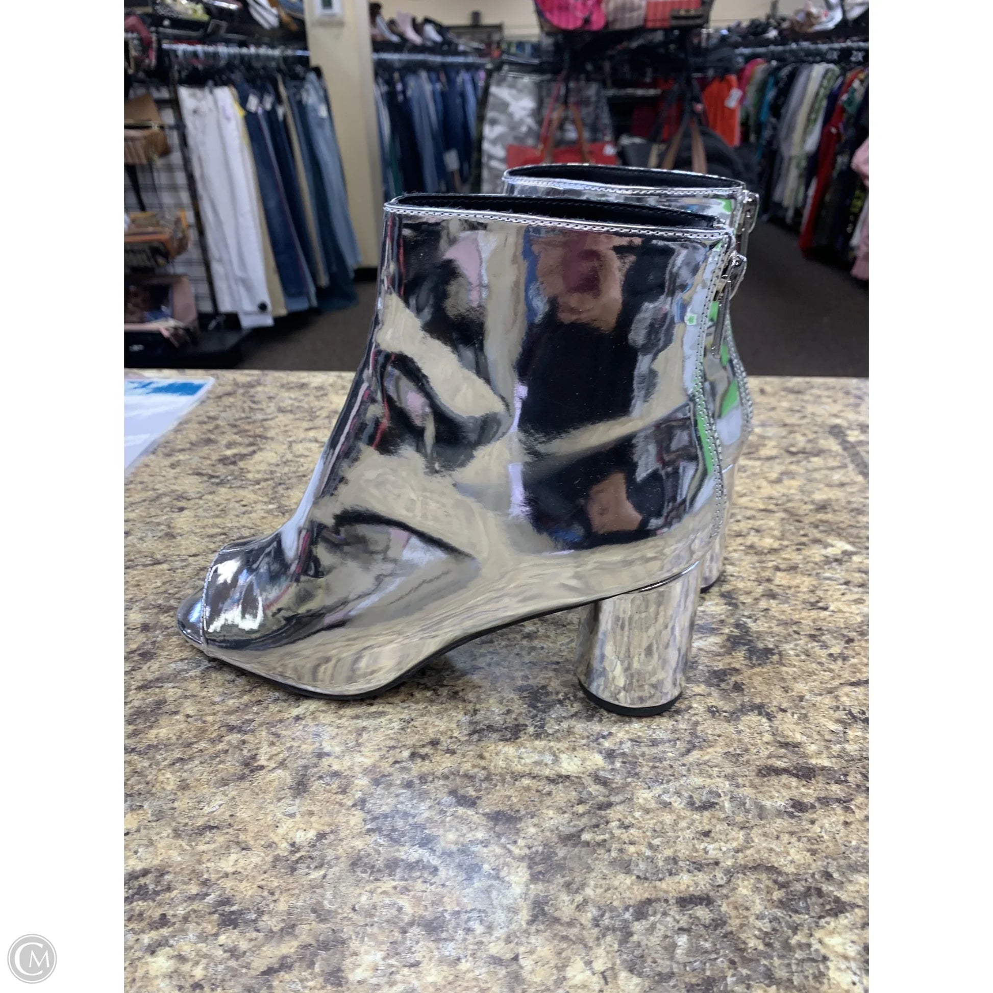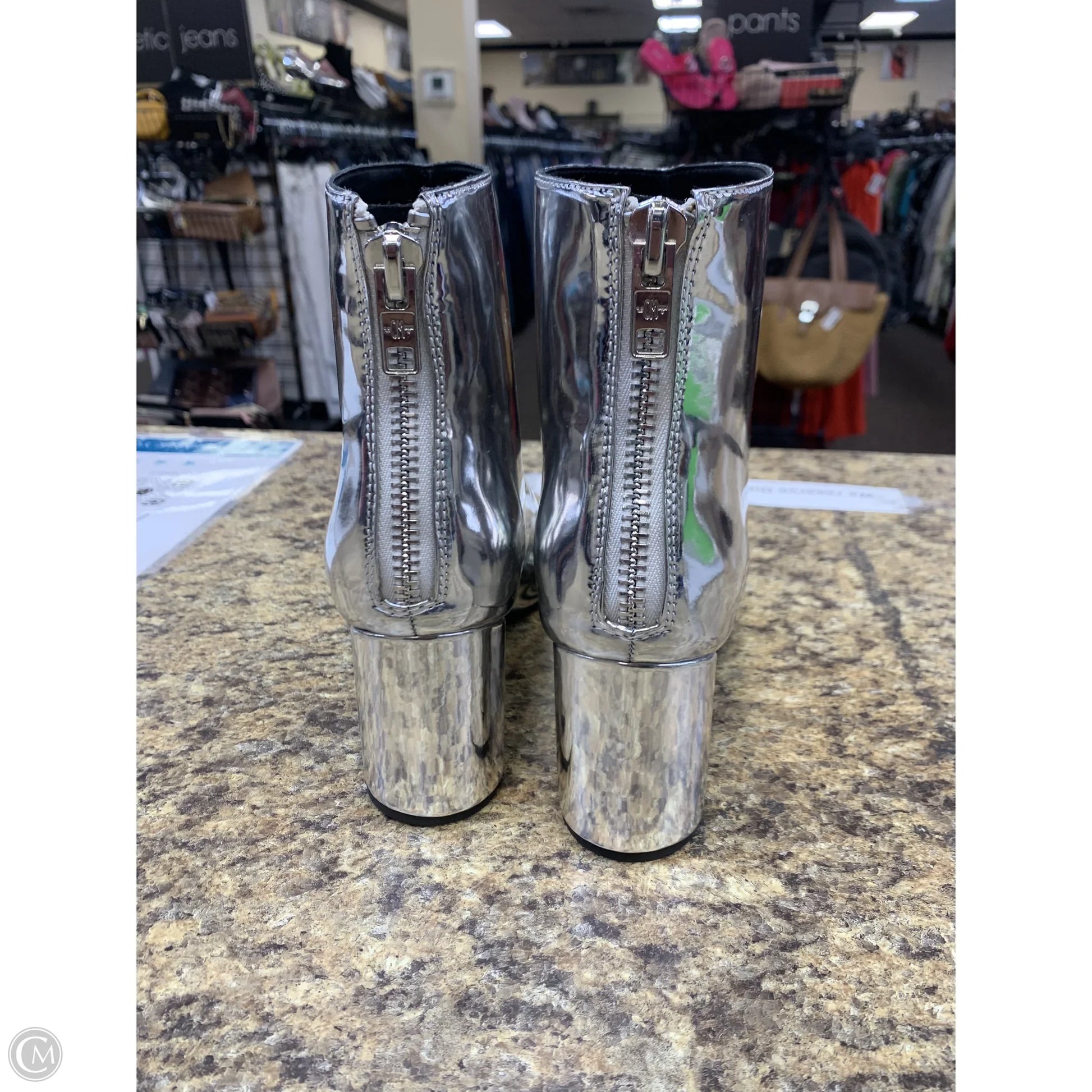 Boots Mid-calf Heels By Cmf In Silver, Size: 11