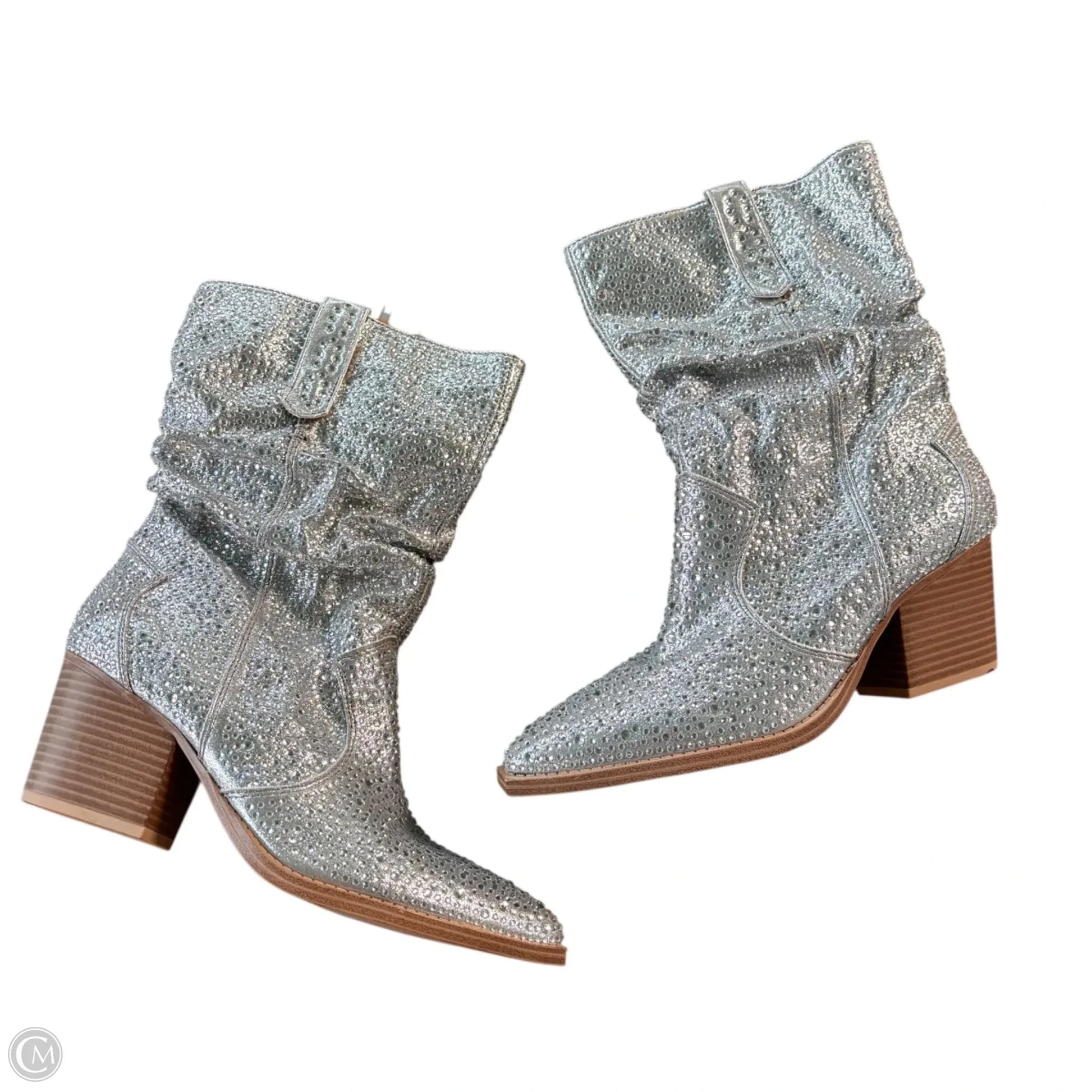 Boots Mid-calf Heels By Crown Vintage In Silver, Size: 7.5