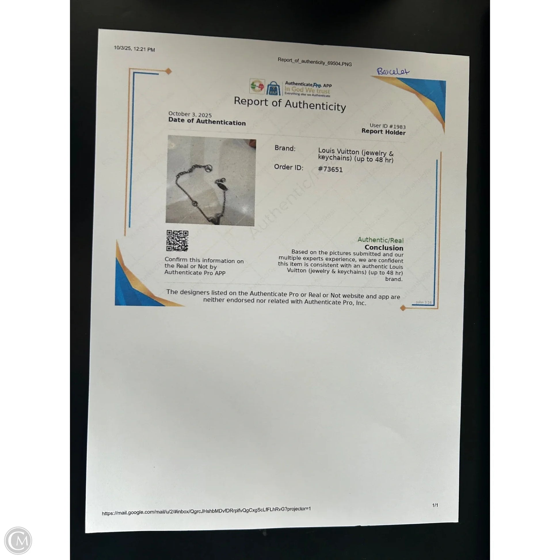 Bracelet Luxury Designer By Louis Vuitton