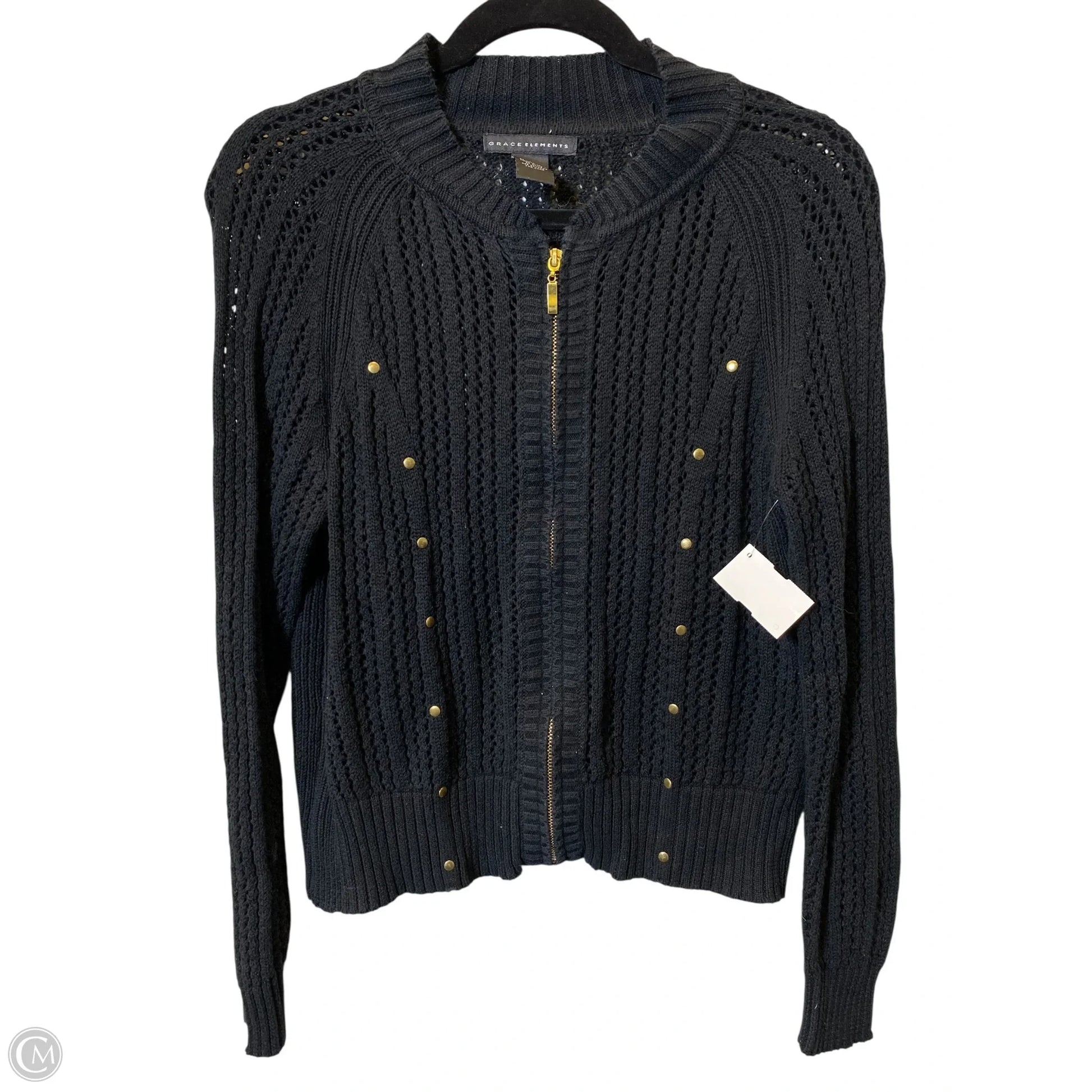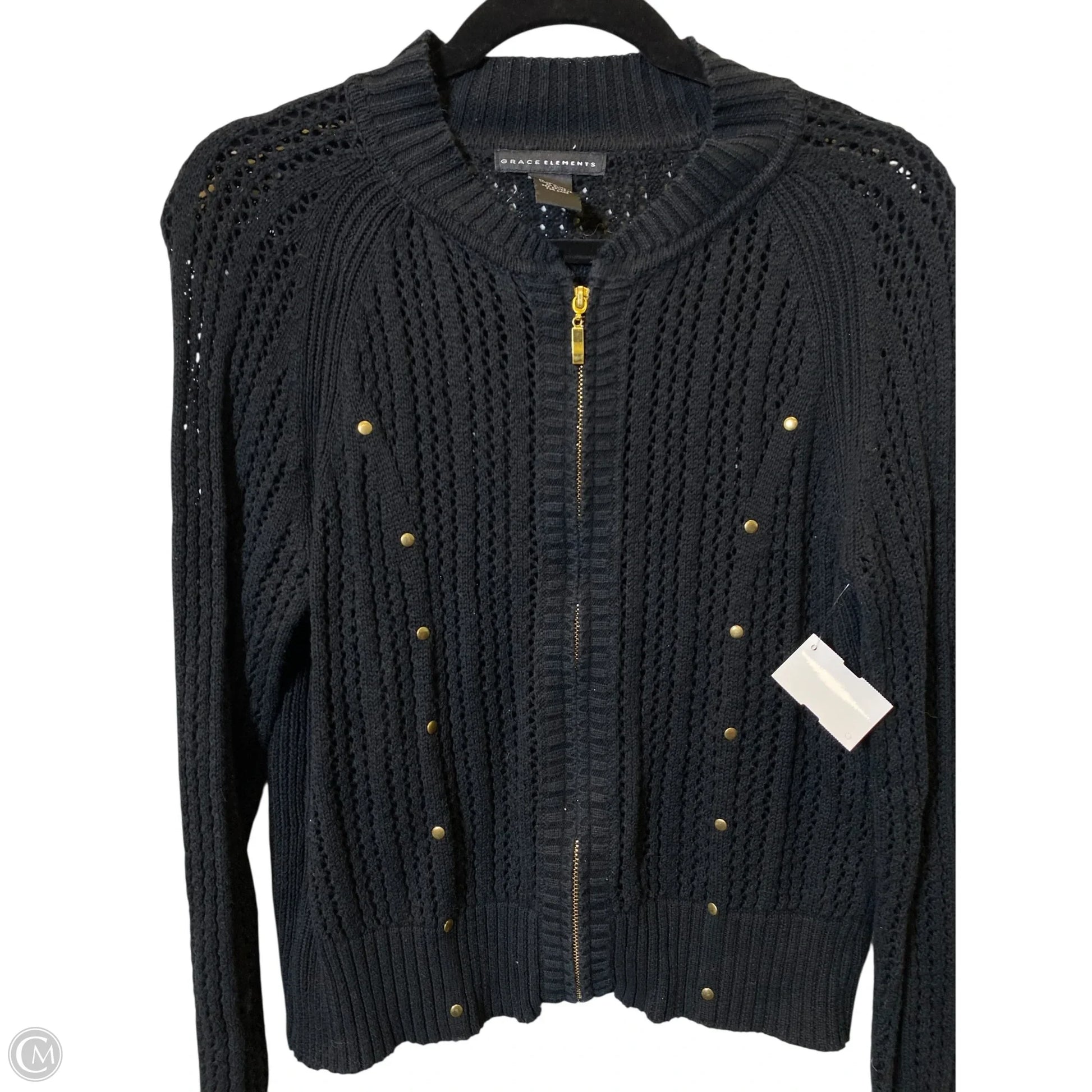 Cardigan By Grace Elements In Black & Gold, Size: L