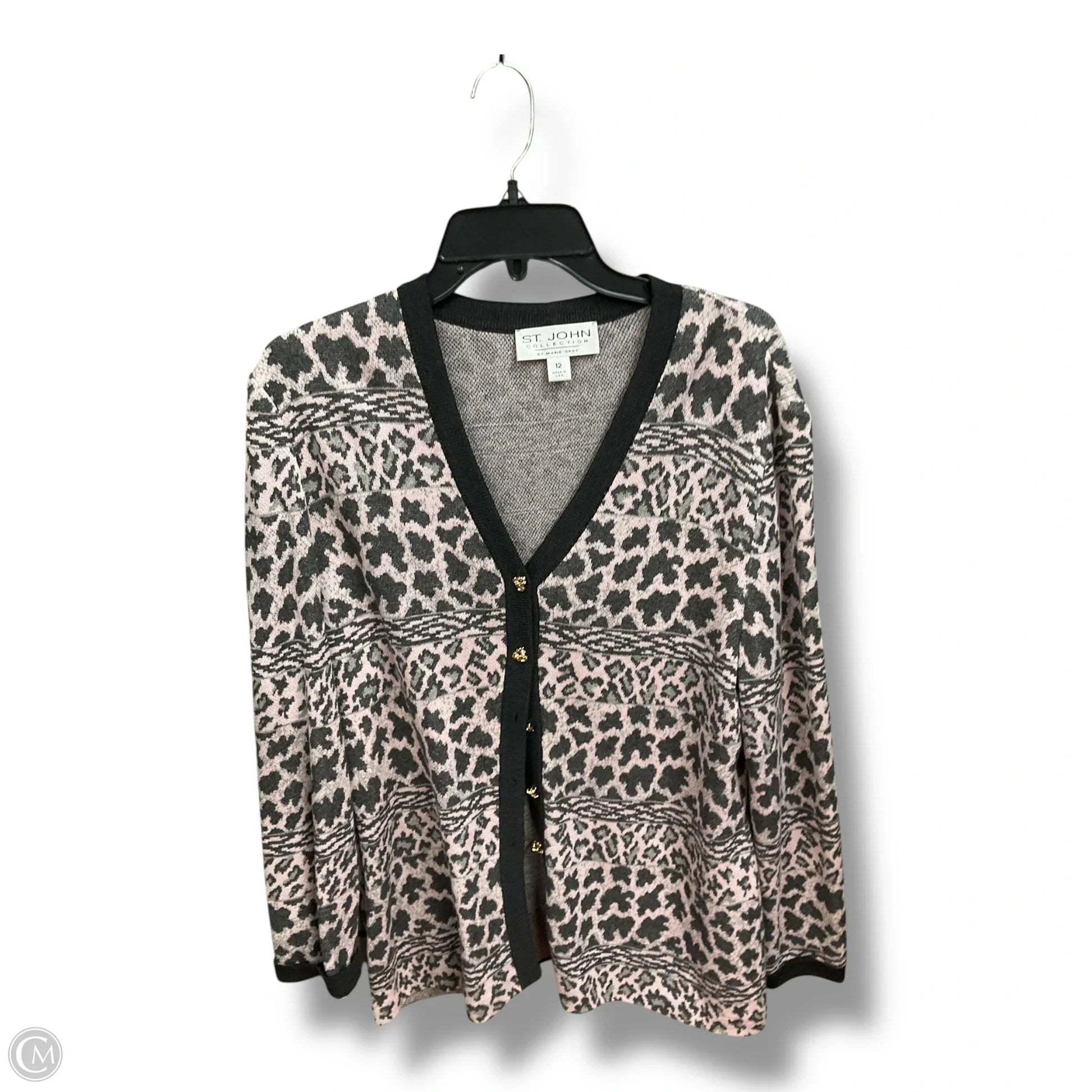 Cardigan Luxury Designer By St John Collection In Animal Print, Size: L