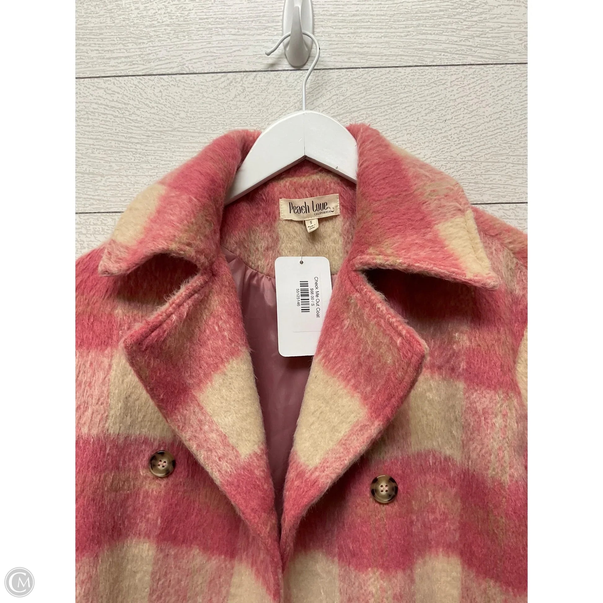 Coat Faux Fur & Sherpa By Peach Love Cream California In Plaid Pattern, Size: S