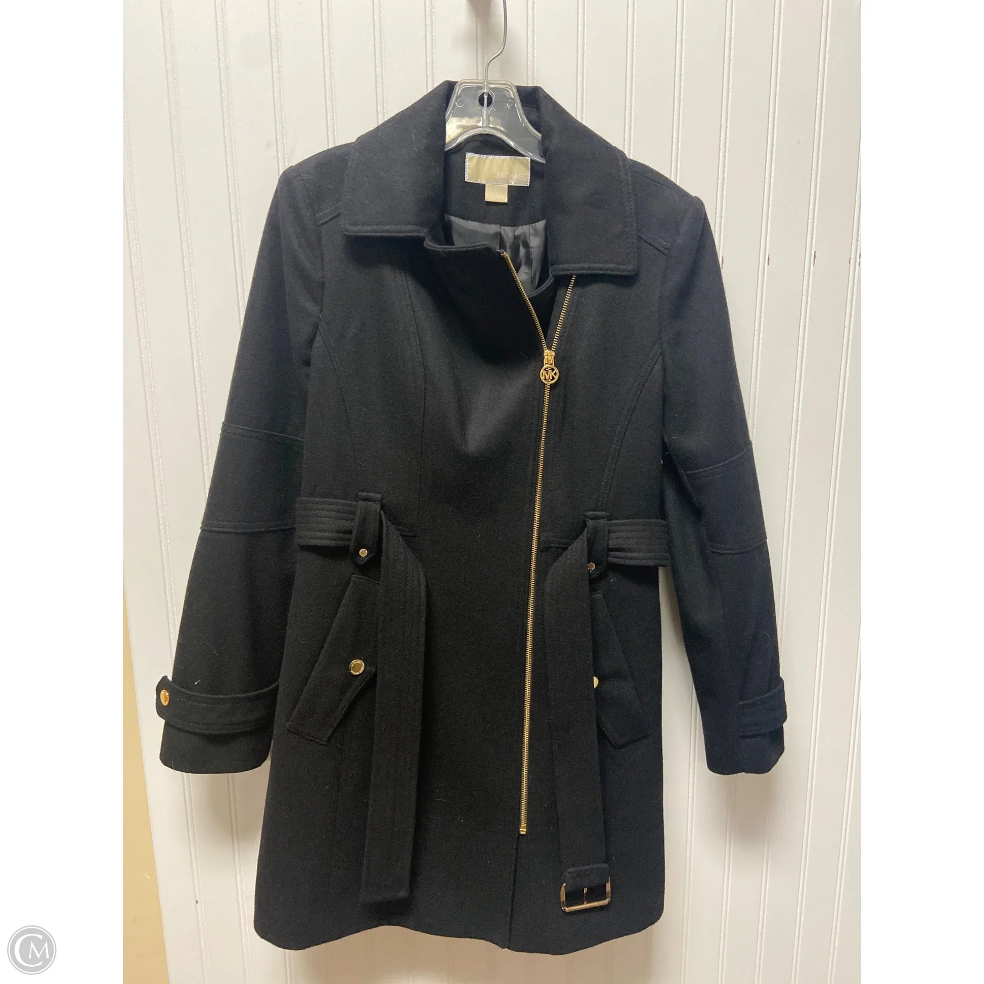 Coat Wool By Michael By Michael Kors In Black & Gold, Size: S